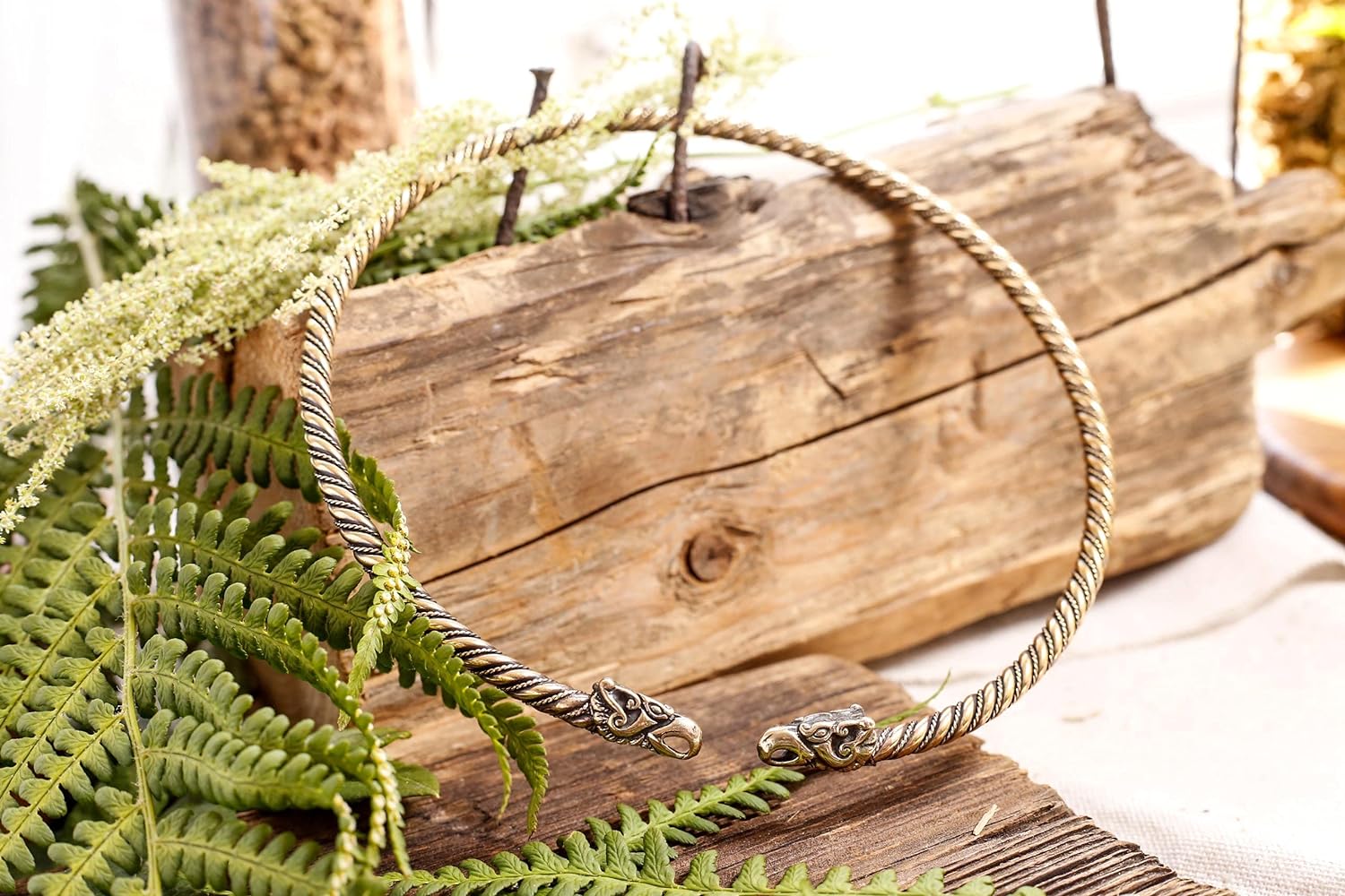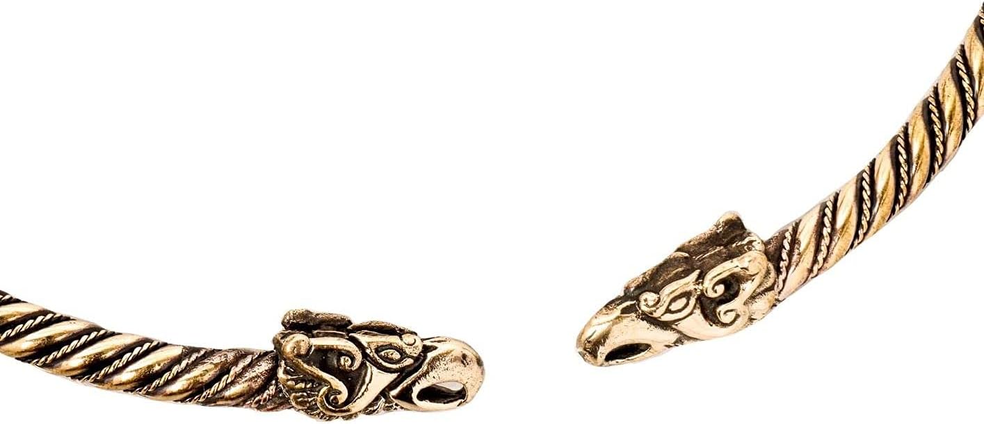 PRODUKTBESCHREIBUNGEN Odins Raben sind nun deine neuen Begleiter HUGIN & MUNIN lassen dich strahlen & unterstreichen deinen Edelmut Der Wikinger Torques ist das perfekte Accessoire für das nächste Mittelalter Fest Gönn es DIR ! * Aus hochwertiger Bronze * Meisterhaft geschaffen * Liebevolle Handarbeit * Innenumfang mit Faden gemessen: 42 cm * Innen Ø 13.5 cm * Stärke des Mittelstücks: 5 mm * Masse der Köpfe: 2 x 1 cm Höhe: 1 cm