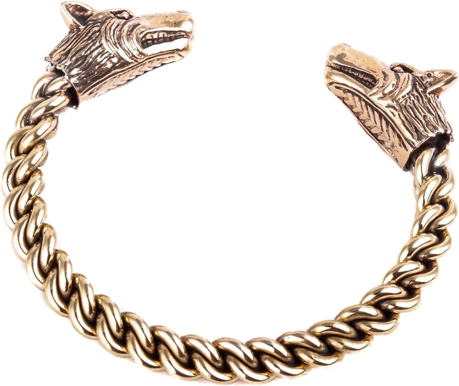 PRODUKTBESCHREIBUNGEN Die Power der Wölfe auf deinem Arm. Bewundernswert und stark gearbeiteter Armreif mit zwei detailverliebten Wolfsköpfen. Der robuste Körper des Wikinger Armschmucks ist von Hand geflochten - ein Meisterstück, ein Kunstwerk. Die hangeflochtenen Bronzestränge schlängeln sich ineinander und verleihen STARK einen mystischen und besonderen Touch. Den Kriegerinnen Touch! * Grössenverstellbar * Aus edler Bronze * Hochwertige Flechttechnik - nach alter Traditions-Handwerkskunst * Innenumfang mit Faden gemessen:16.5 cm * Innen Ø 5.6 cm * Grösse der Wolfsköpfe: 1.7 x 2.3 cm ~ Höhe: 2.3 cm Damit Du sehr lange Freude an Deinem Armreif hast, solltest Du diesen beim erstmaligen Anlegen, so wenig wie möglich aufbiegen. Hierbei den Armreif, wenn Du ihn in der Hand hältst, die beiden Enden nie nach rechts und links auseinander ziehen, sondern ein Ende nach vorne und das andere Ende zum Körper hin und wirklich nur so weit wie nötig aufbiegen. Für den täglichen Gebrauch: Den Armreif bitte immer über das Handgelenk anziehen, wenn möglich, ohne zu biegen, um das Material nicht unnötig zu belasten. Silber und Bronze sind keine elastischen Materialien, deshalb den Armreif nur einmalig vor dem ersten Tragen vorsichtig zurechtbiegen.