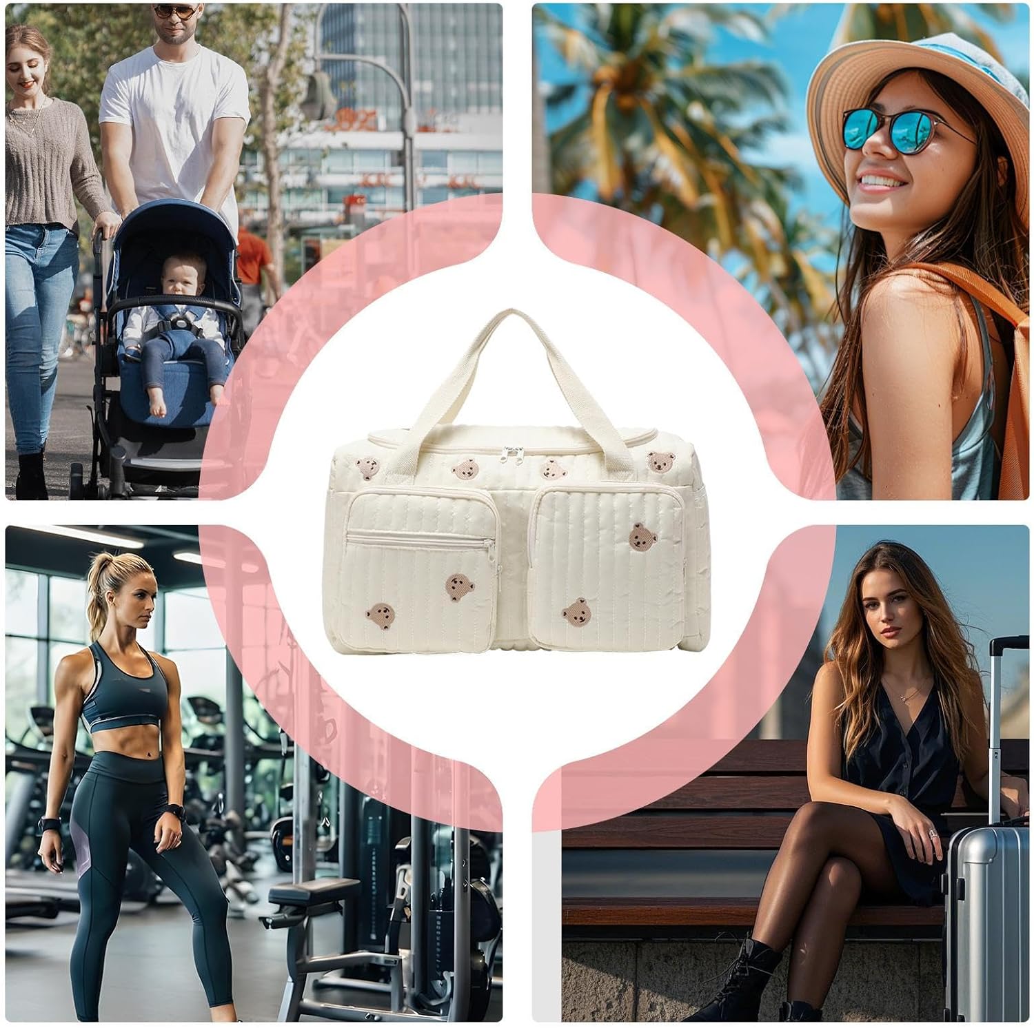 - Verspieltes und dennoch praktisches Design: Die Wickeltasche für die Reise vereint skurrile ästhetische Elemente wie Cartoon-Bär-Stickereien und sanfte Farbkoordination, um die optische Attraktivität zu steigern und sicherzustellen, dass sie zum