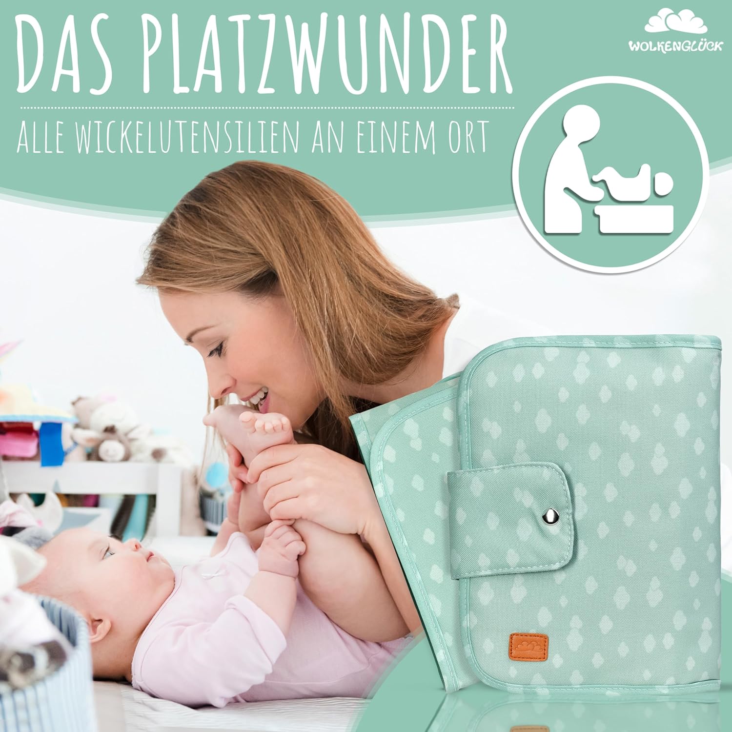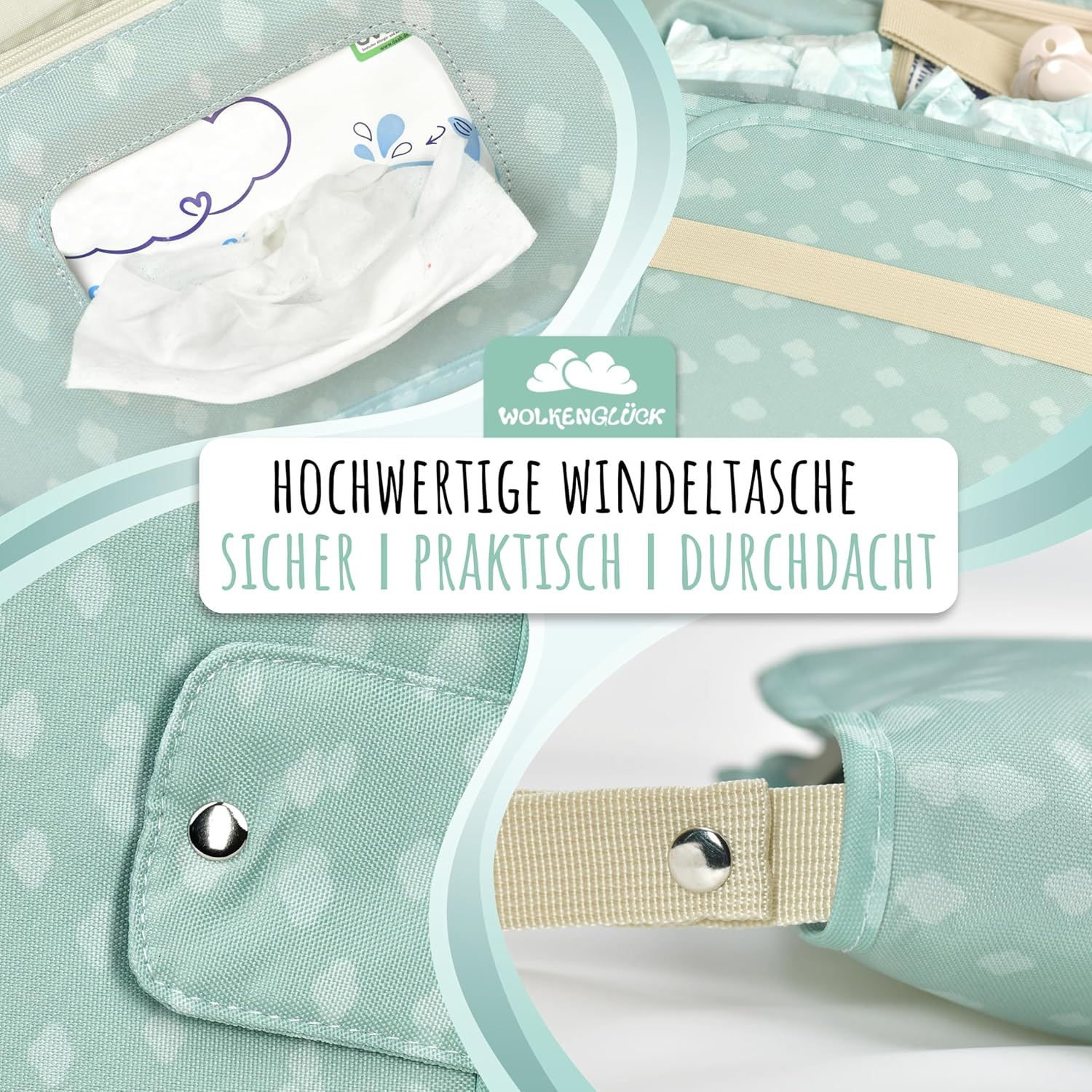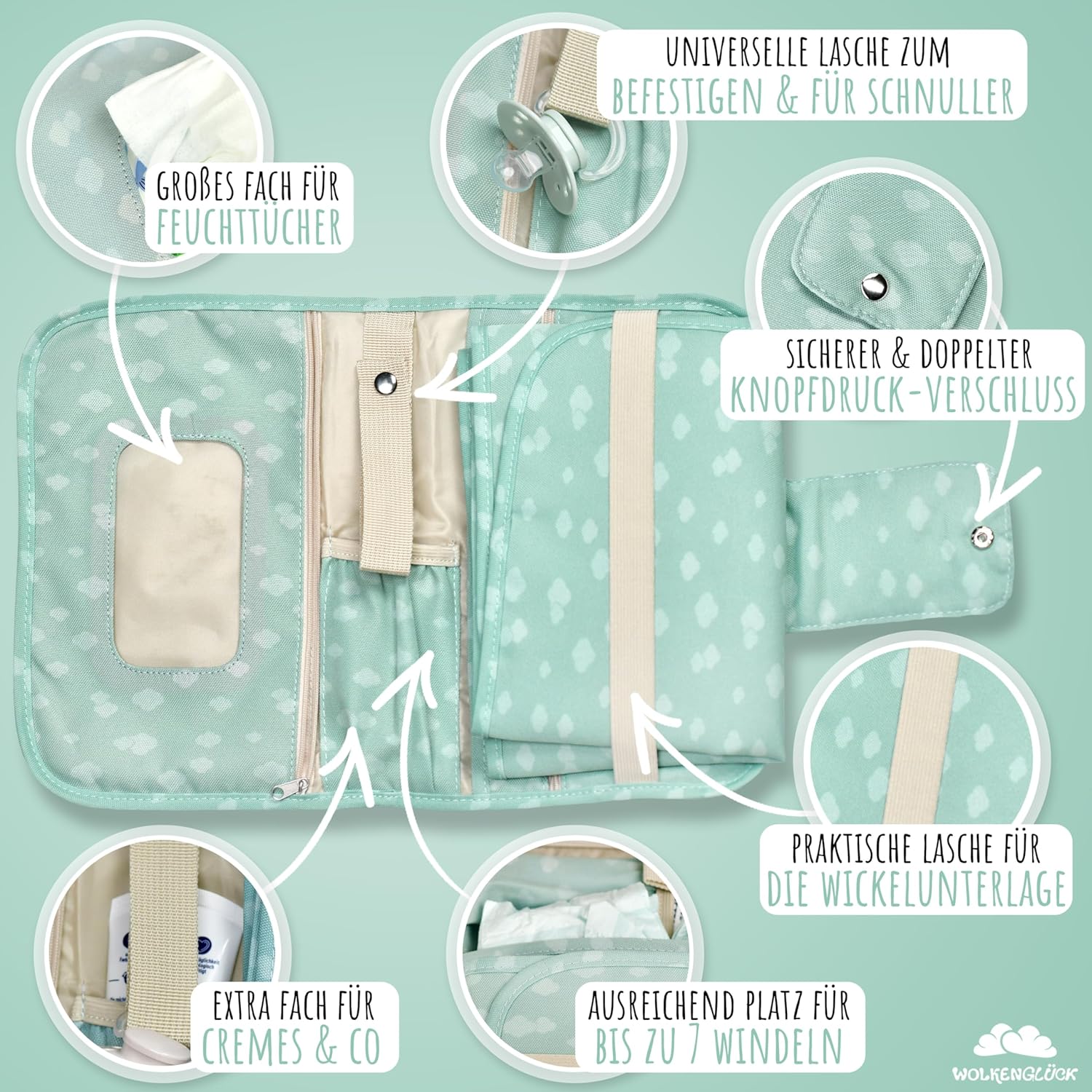 - ✅ KOMPAKT & GERÄUMIG - Die WOLKENGLÜCK Baby Wickeltasche ist zusammengeklappt ein echtes Platzwunder - perfekt als kleine Windeltasche für unterwegs geeignet!