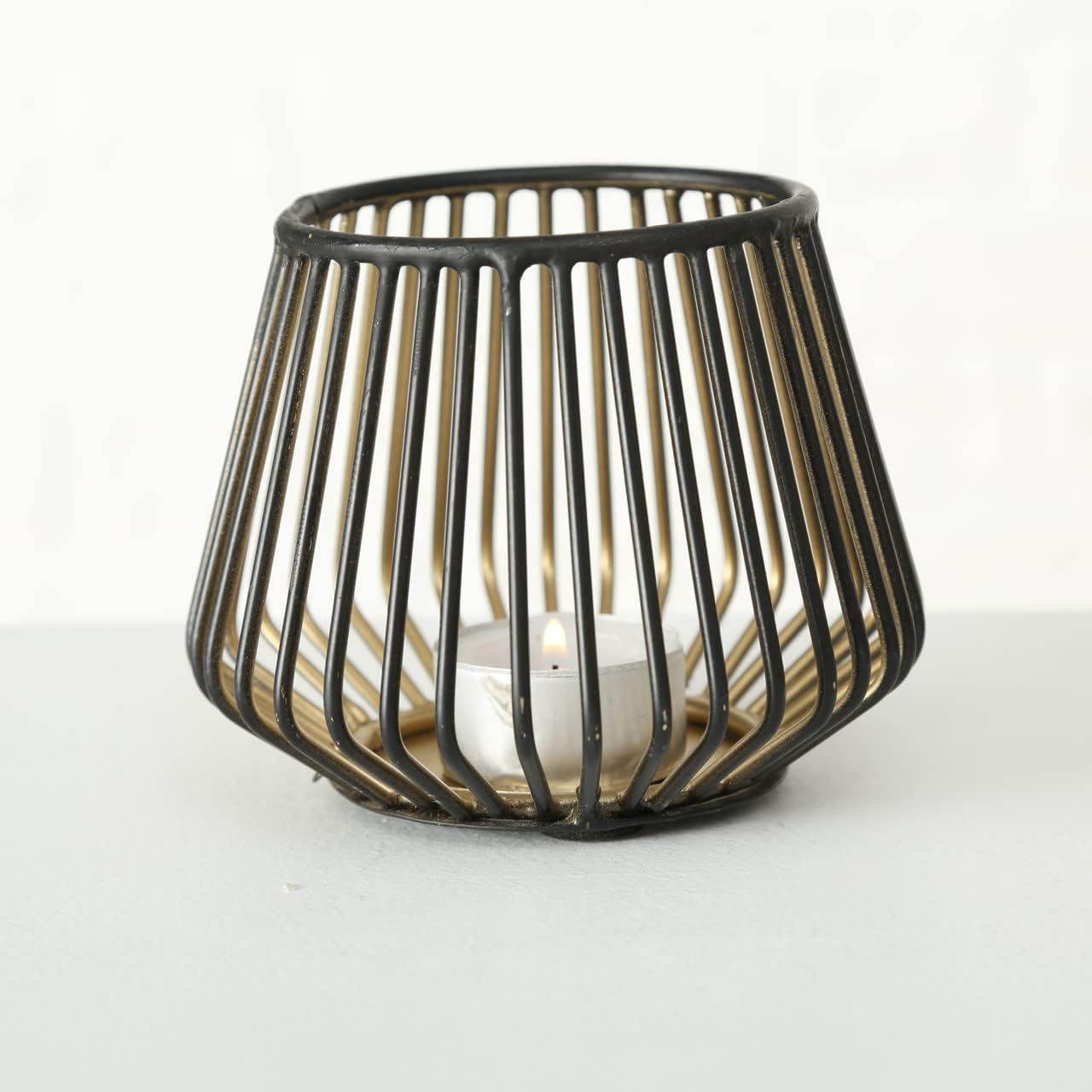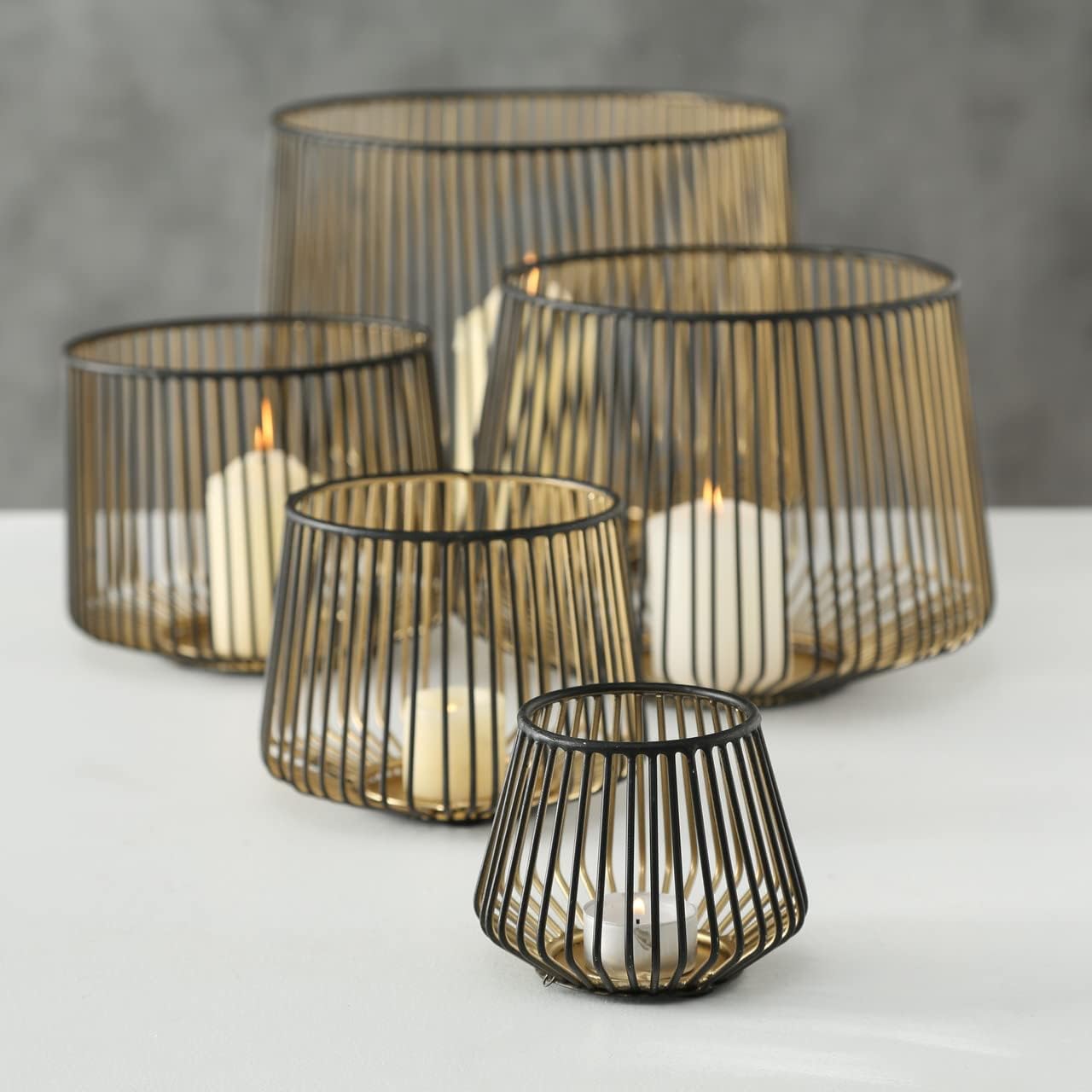 - hübscher und edler Windlichthalter aus Eisen Farbe: aussen schwarz und innen gold, zaubert einen wundervollen Glanz in Ihre Wohnung