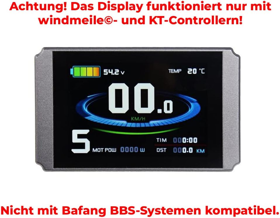 - Kompatibilität: Das Display funktioniert nur mit windmeile - und KT-Controllern! Nicht mit Bafang BBS-Systemen kompatibel! Das Display passt auf Lenker mit 31,8mm oder mit den gelieferten Reduzierstücken auf 22,2mm, das Steuerelement hat einen