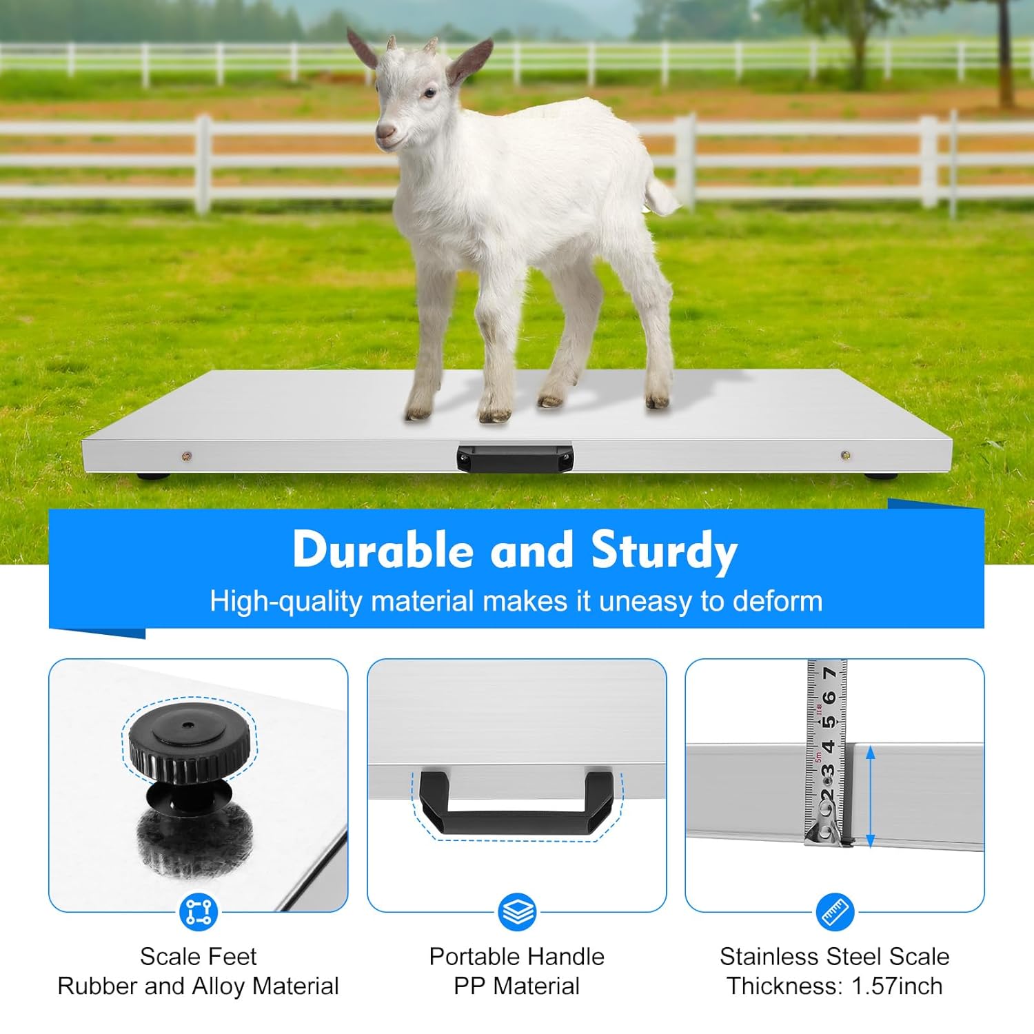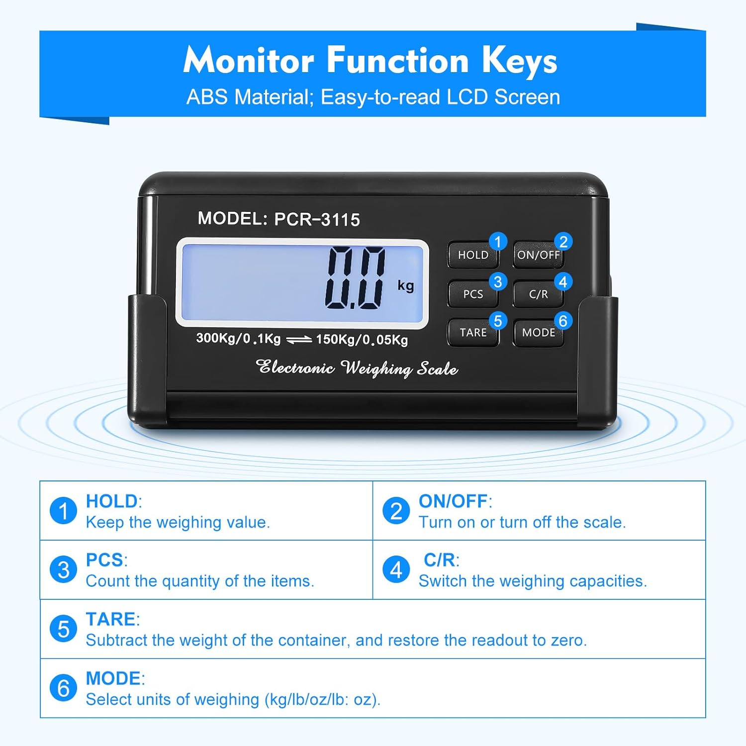 - 🐾 3 Messbereich wählbar: 300 kg (0,1 kg Genauigkeit); 150 kg (0,05 kg Genauigkeit).