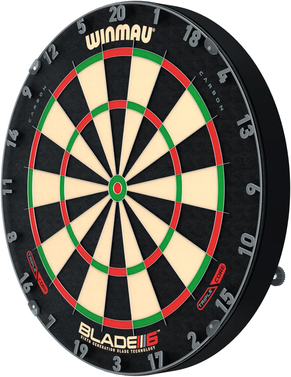 - Der Triple Core Carbon verfügt über ein brandneues patentiertes System mit einer nahtlosen Spielfläche und einer dritten, hochkomprimierten Schicht mit Carbonfaserverstärktem Sisal. Die ultimative Dartboard-Konstruktion, bietet optimale Faserdichte,