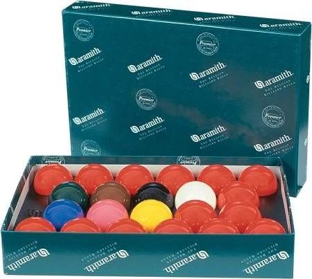Der Einstieg in die Welt der Aramith Snookerkugeln. Die Kugeln werden aus Aramith Phenolharz gefertigt. Die Aramith Premier sind ein idealer Kompromiss aus Qualität und Preis. Vorteile von Aramith-Kugeln Exakt im Gleichgewicht: Konstante Dichte und Gleichgewicht sind unabdingbar für die Kontrolle von Geschwindigkeit, Laufrichtung, Rotation sowie Auf- und Rückprall des Balls während des Spiels. Durch das durchgehend gehärtete Phenolharz wird das Material vollkommen stabilisiert, wobei jeder Aramith-Ball eine gleichmässige Dichte aufweist. Durch das genau in der Mitte des Balls liegende Massezentrum ist der Ball exakt im Gleichgewicht und hat einen vollkommen präzisen Lauf. Perfekter Rückprall: Weitaus wichtiger als die Balltoleranzen sind die Rückpralleigenschaften der Bälle. Nur ein kalkulierbarer Rückprall ermöglicht die strategische Positionierung des Spielballs um den nachfolgenden Stoss zu optimieren. Die einzigartige Elastizität des Aramith-Phenolharzes ist auf einen optimalen Rückprall ausgelegt, der es dem Spieler ermöglicht, jeden Stoss genau zu steuern. Weltweite Anerkennung: Die ausschliessliche Verwendung von Aramith-Phenolharzbällen durch die meisten Profiturnierveranstalter, Verbände und Amateurligen bei Wettkämpfen und Meisterschaften in der ganzen Welt ist eine eindeutige Bestätigung des hohen Ansehens und der überragenden Qualität der Aramith-Bälle.