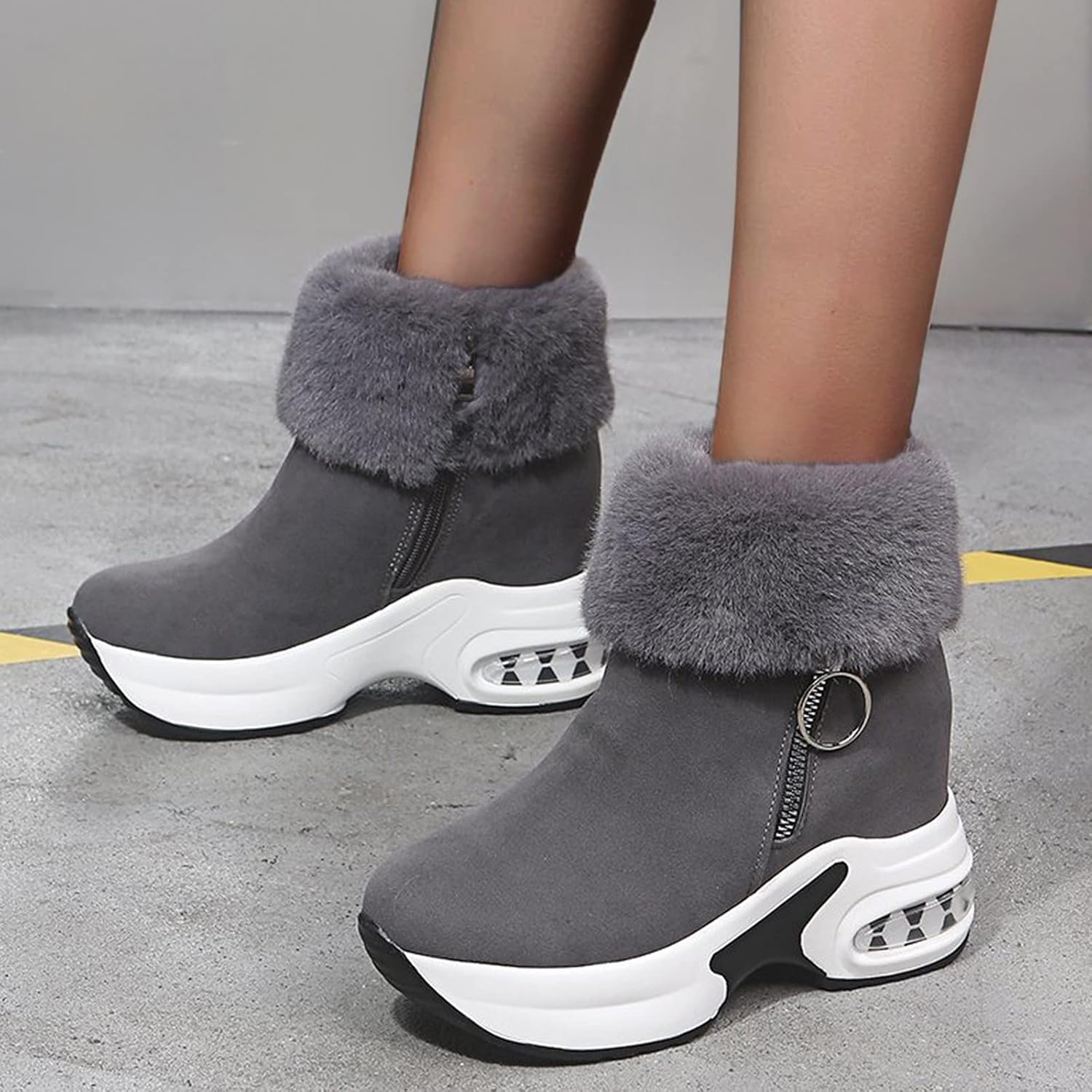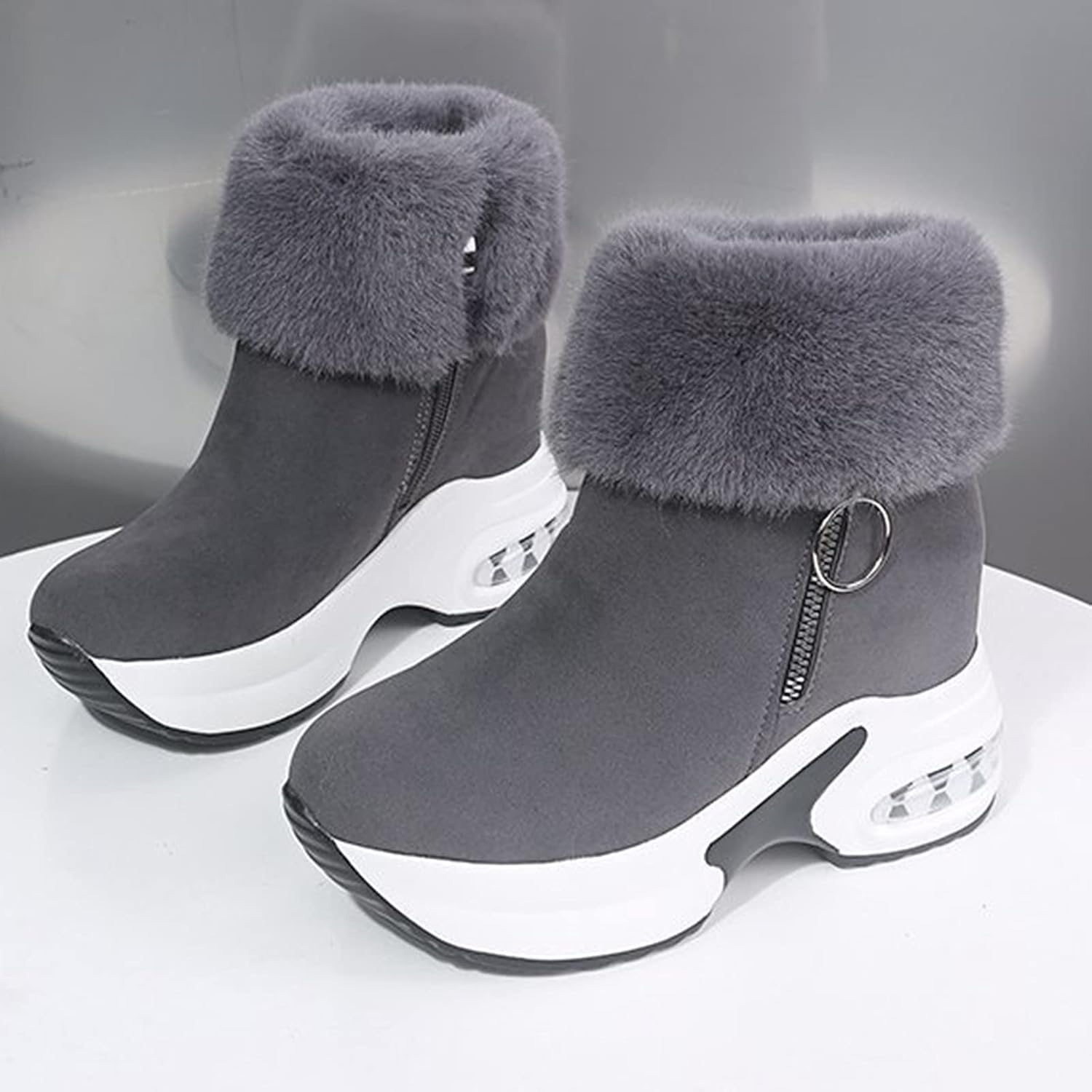 Winterstiefel Damen Stiefel Fraue Stiefeletten mit Absatz Plateau Warm Gefüttert Schnürstiefel Winte