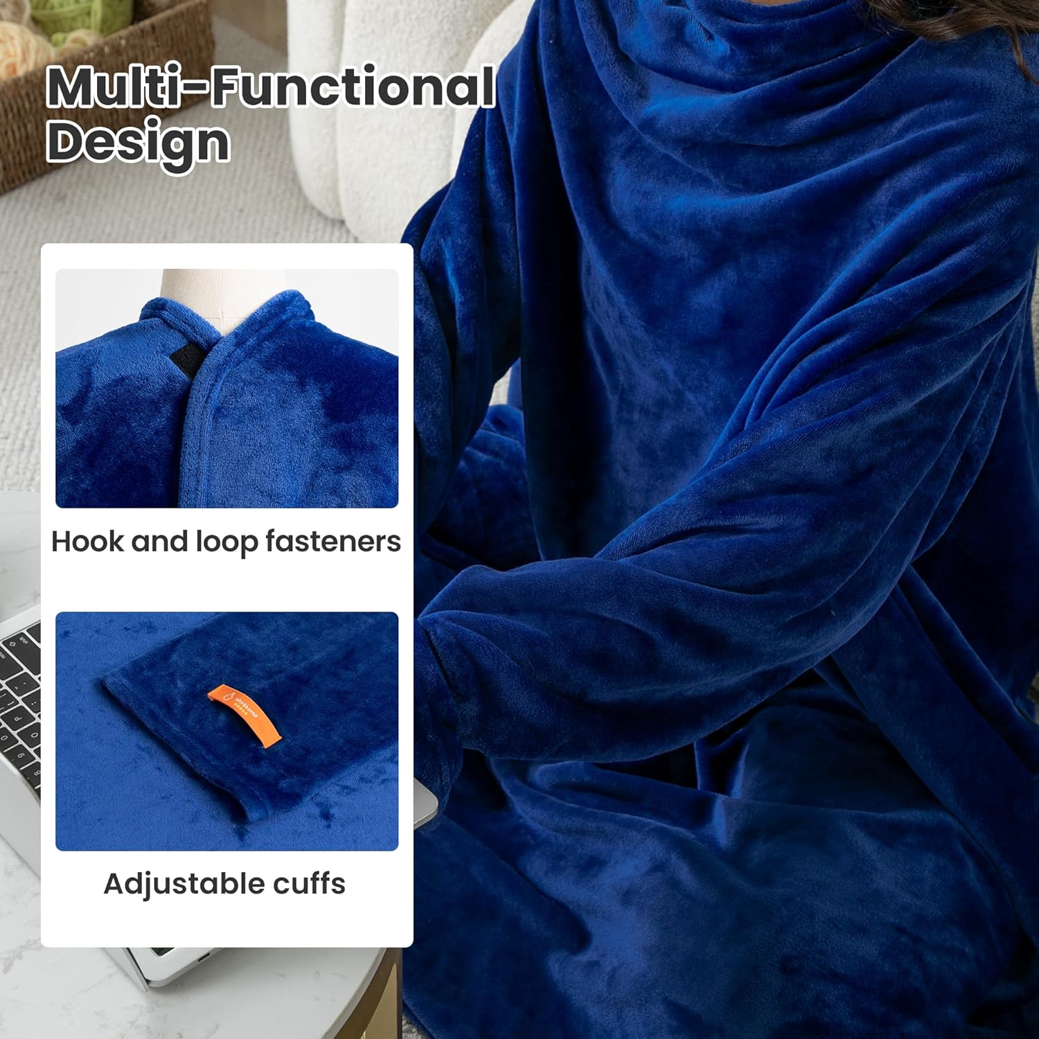 - PRAKTISCH - Der Klettverschluss auf der Rückseite der Decke verhindert, dass sie vollständig aufgeht oder vom Körper rutscht und hält Ihren Rücken warm. Die beiden Ärmel sind mit elastischen Bändern ausgestattet, um Ihre Hände freier bewegen zu