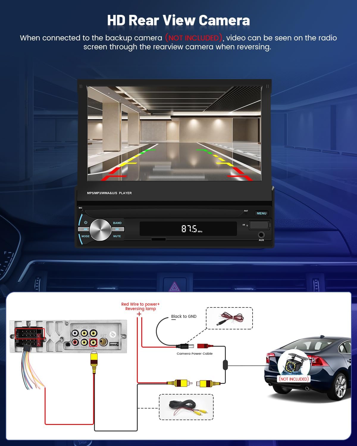 • 【Autoradio 1din mit manuell einziehbarem Bildschirm】: Autoradio 1din mit 7" HD-Touchscreen, der Benutzer muss den Bildschirm manuell herausziehen, wenn in Gebrauch. Legen Sie es weg, wenn es nicht in Gebrauch ist, um es vor Staub zu schützen. Das