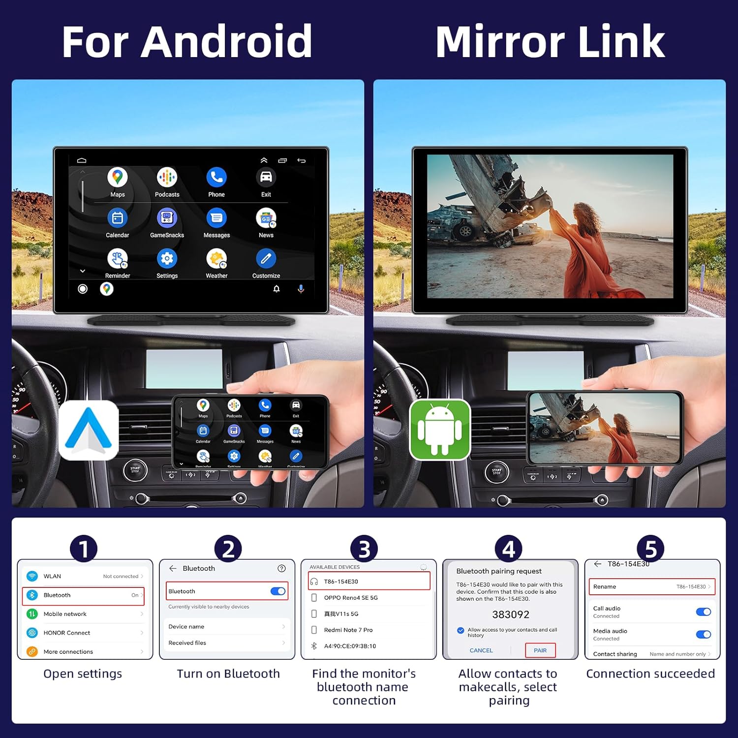 - 【Für iPhones, Wireless Carplay und Airplay】Dieser drahtlose Automonitor ist mit Apple Carplay und Airplay kompatibel. Sie können navigieren, Musik abspielen, "Siri" für die Sprachsteuerung anrufen. Die Airplay-Funktion ermöglicht es Ihnen, Ihre