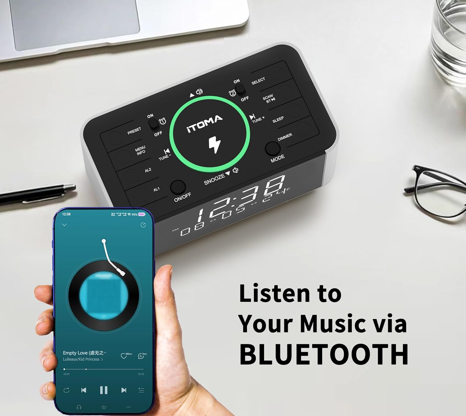 - BLUETOOTH und Kopfhörerbuchse: Unser Wecker verwendet das neueste Bluetooth, mit dem Sie Ihre Lieblingsmusik ohne Unterbrechungen hören können