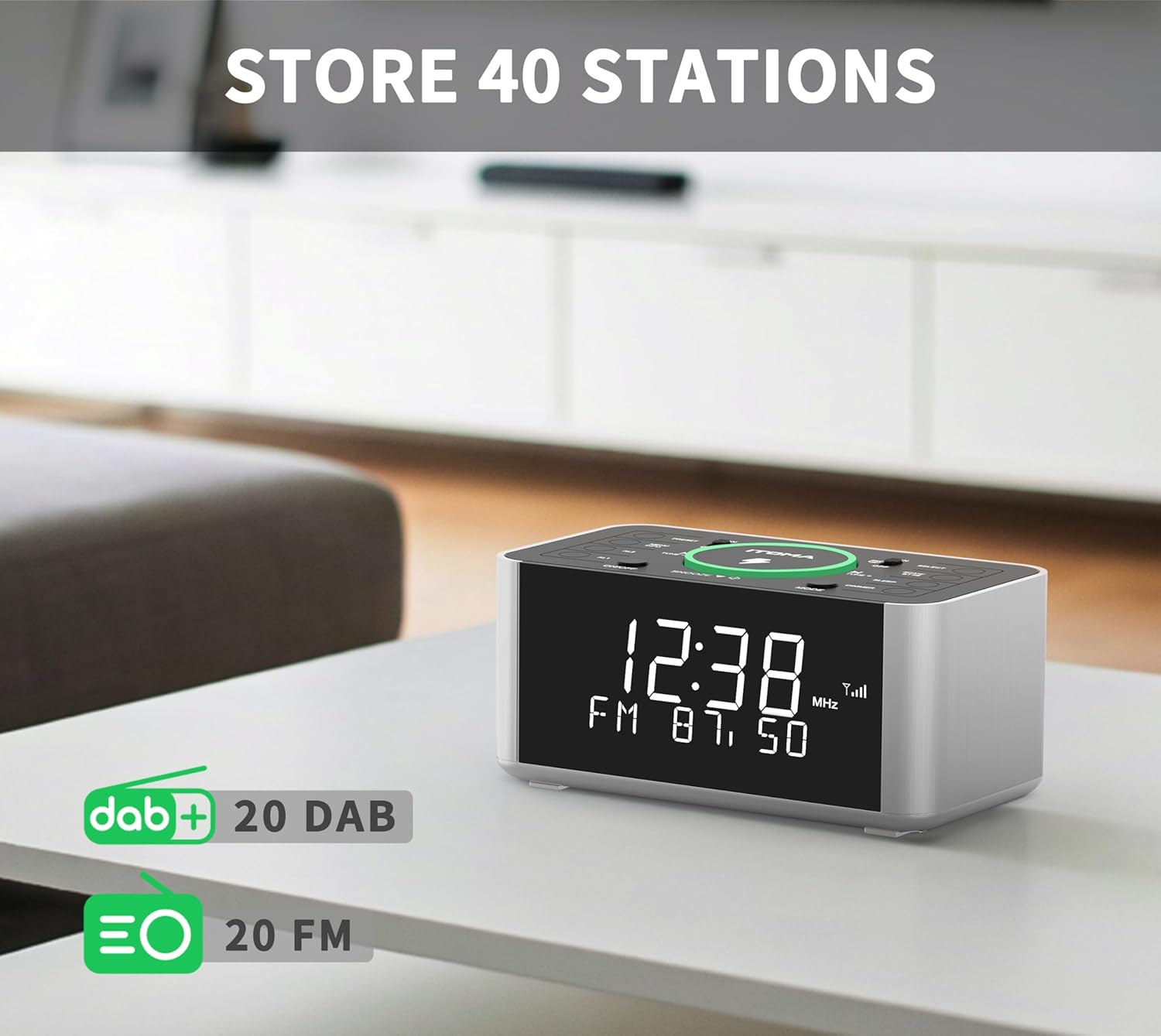 - DAB-FM-RADIO: Mit der DAB- und FM-Technologie haben Sie ein erstklassiges Radio-Erlebnis. Wenn Sie es zum ersten Mal einschalten, wird es automatisch auf alle verfügbaren Sender eingestellt. Sie können auch Ihre bevorzugten 40-Sender (20 DAB/20 FM)
