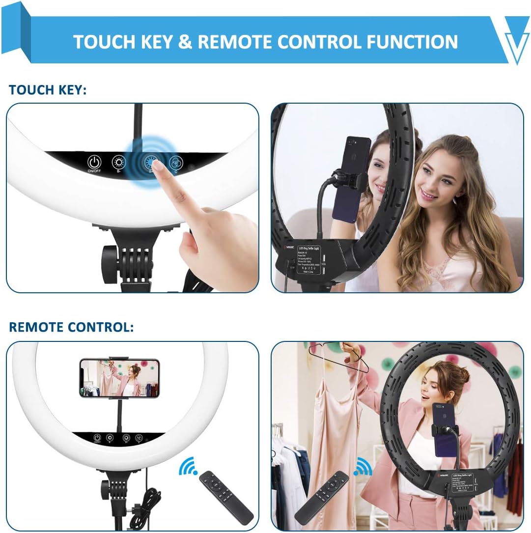 Wisamic Ringlicht 18 Zoll mit Stativ LED Ringleuchte: Berührung und Fernbedienung 6000K Dimmbar Foto