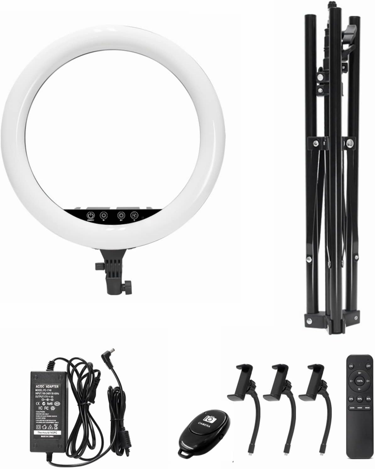 • *Lieferumfang: 1 * 18 Zoll LED dimmbares Ringlicht, 1 * 1.9M Licht Stativ, 1 * Fernbedienung für licht, 3 * Halter für Handy , 1 * Adapter, 1 * Bluetooth-Fernbedienung, 1 * Anleitung