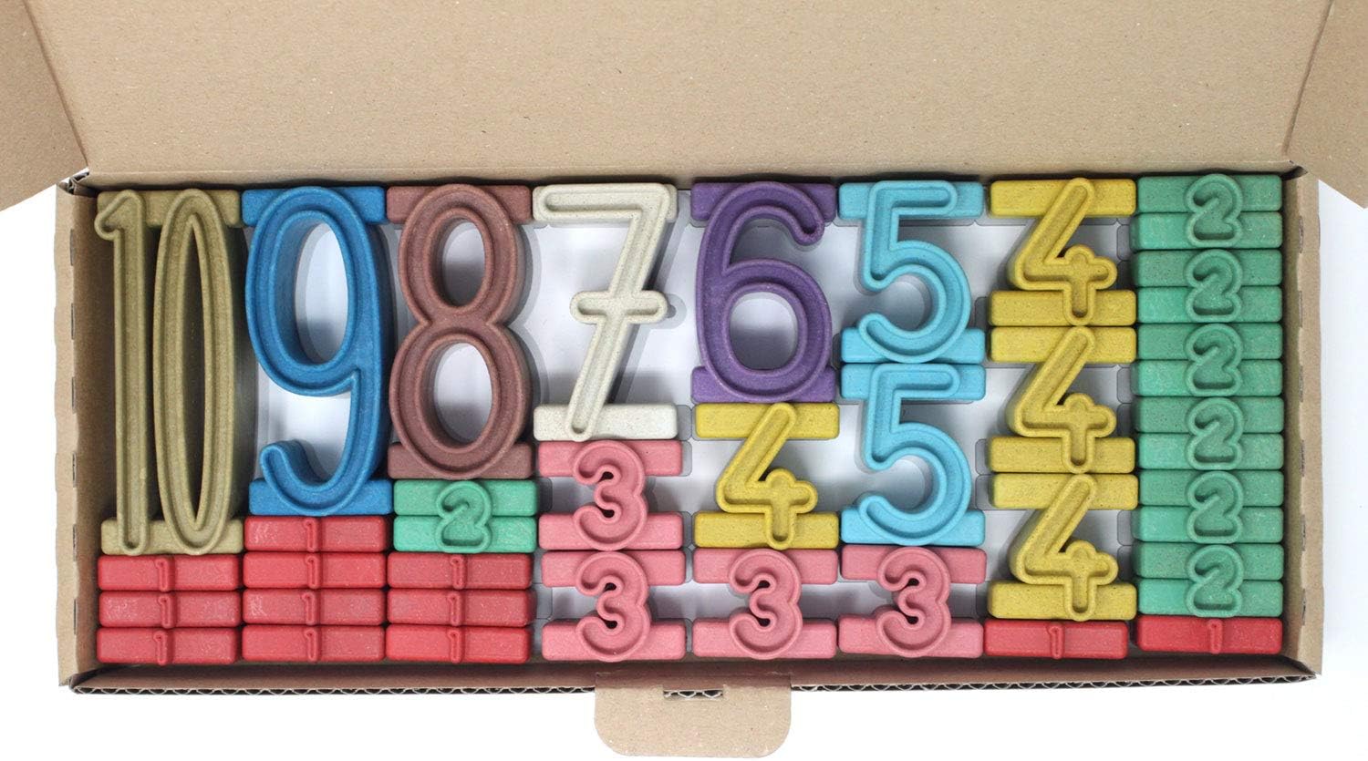 - Der Wert der Zahl entspricht der Höhe in Zentimeter, alle Zahlen sind 4 cm breit und 3 cm tief