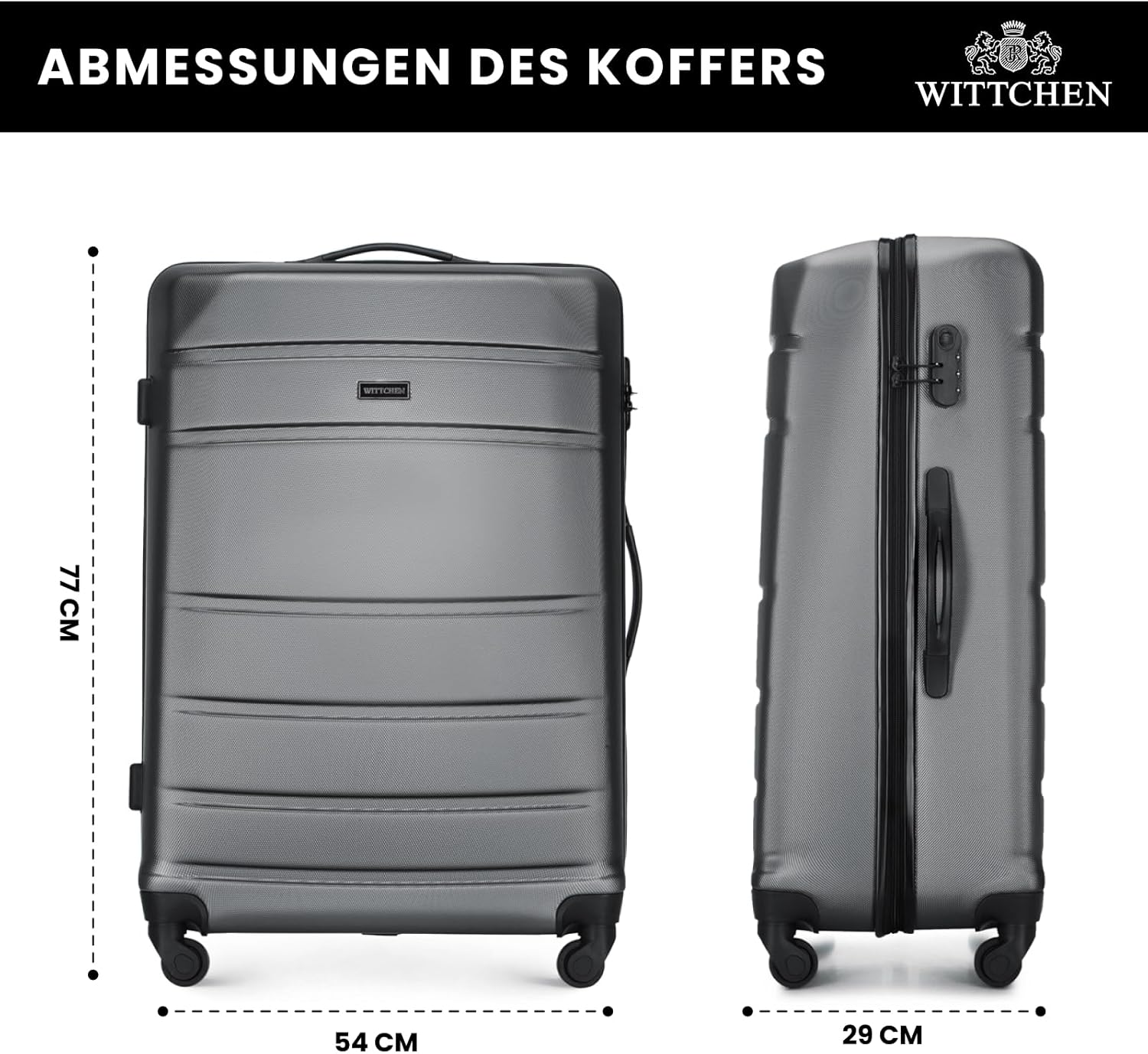 - ABMESSUNGEN: (H x B x T): 77x54x29 cm, Gewicht: 4 kg, Volumen: 98 L. Die Abmessungen umfassen auch Aussenteile wie Griffe und Räder. Die Abmessungen sind ungefähre Angaben und können sich um +/- 5% unterscheiden.