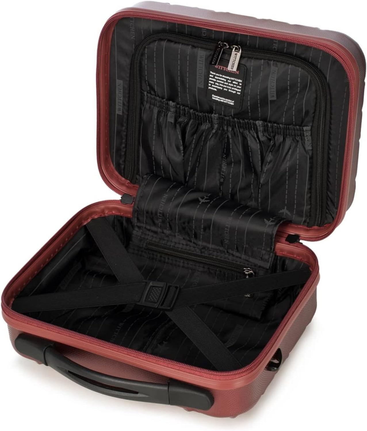 - INNER: zwei offene Taschen und eine Reissverschlusstasche; Hauptfach mit elastischen Innengurten zur Gepäcksicherung