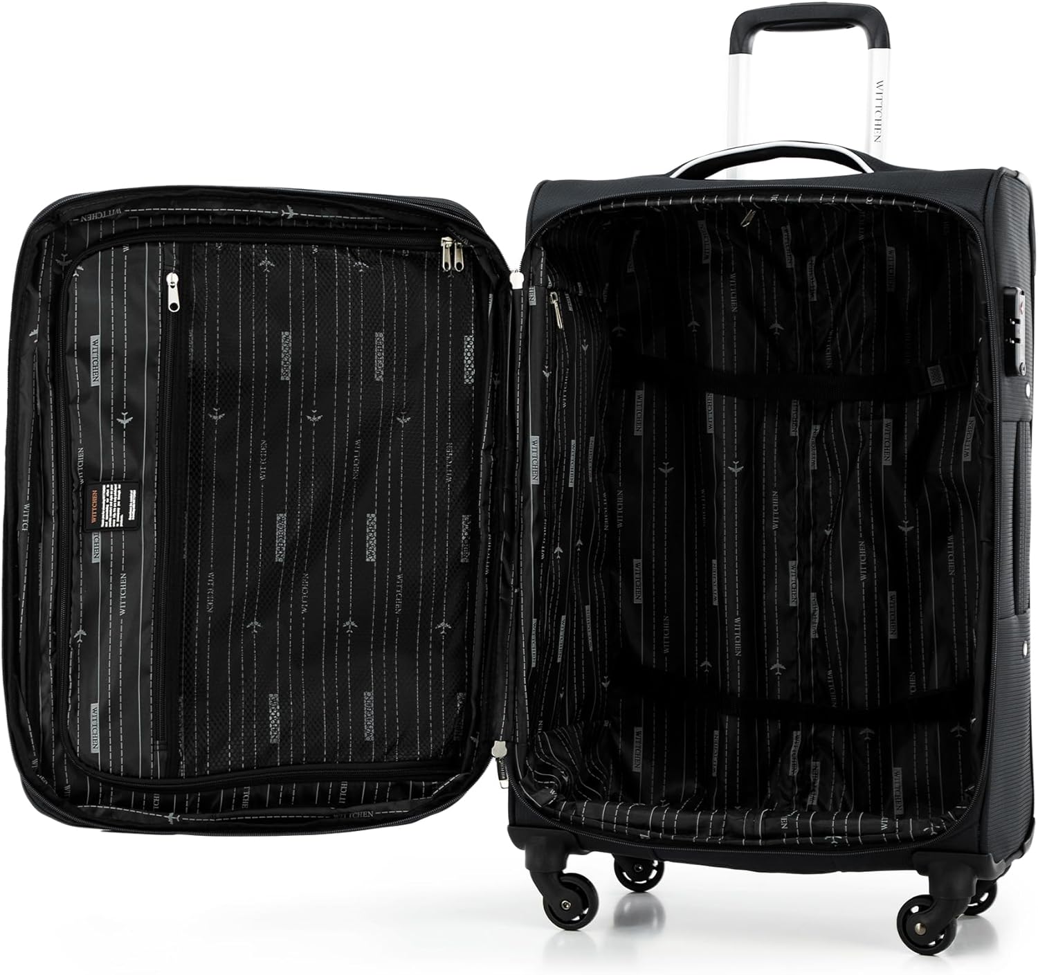 - SCHLOSS: TSA- Kombinationschlosssystem, das nicht nur das unerwünschte Öffnen des Gepäcks verhindert, sondern es den Behörden auch ermöglicht, das Gepäck zu öffnen, ohne das Schloss zu zerstören