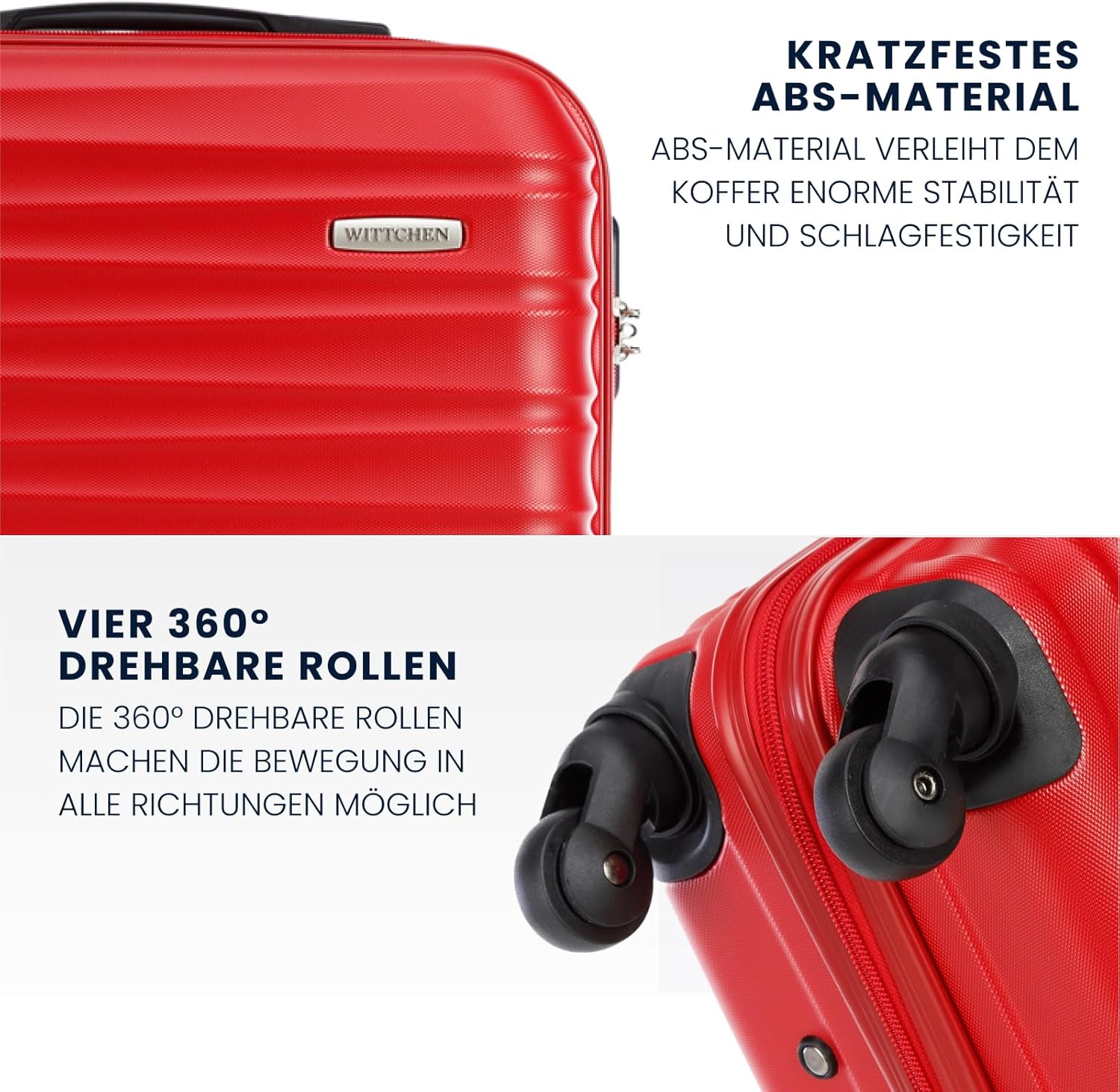 - ABMESSUNGEN: Kleiner: (H x B x T): 54 x 38 x 20 cm, Gewicht: 2,6 kg, Volumen: 34 L; Mittlerer: 67 x 45 x 26 cm, Gewicht: 3,5 kg, Volumen: 65 L; Grosser: 77 x 52 x 29 cm, Gewicht: 4,1 kg, Volumen: 96 L; Kosmetikkoffer: 30 x 34 x 16 cm, Gewicht: 1 kg,