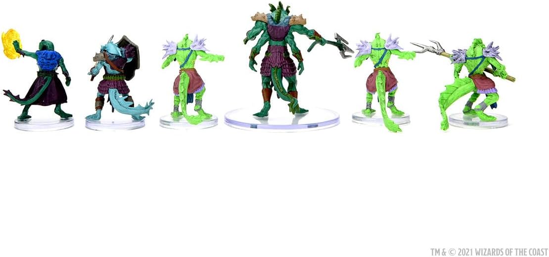 PRODUKTBESCHREIBUNGEN PRODUKTBESCHREIBUNG WizKids, the industry leader in quality pre-painted plastic miniatures, is pleased to bring our latest fantasy miniatures series to life, Monster Warbands! The D&D Icons of the Realms: Sahuagin Warband contains 6 of the iconic D&D foe for your adventurers to battle! Dungeon Masters can quickly build new encounters for their players with the awesome mix of Sahuagin, to keep play sessions exciting over multiple campaigns. With its non-blind packaging, building a Sahuagin army is quick and simple! The most influential fantasy roleplaying game in the world has never been easier to bring to the tabletop, with the all-new Warbands! This set contains: Sahuagin (2) Sahuagin Baron Sahuagin Blademaster Sahuagin Champion Sahuagin High Priestess *Contents subject to change *Images not final WARNHINWEISE Nicht geeignet für Kinder unter 36 Monate