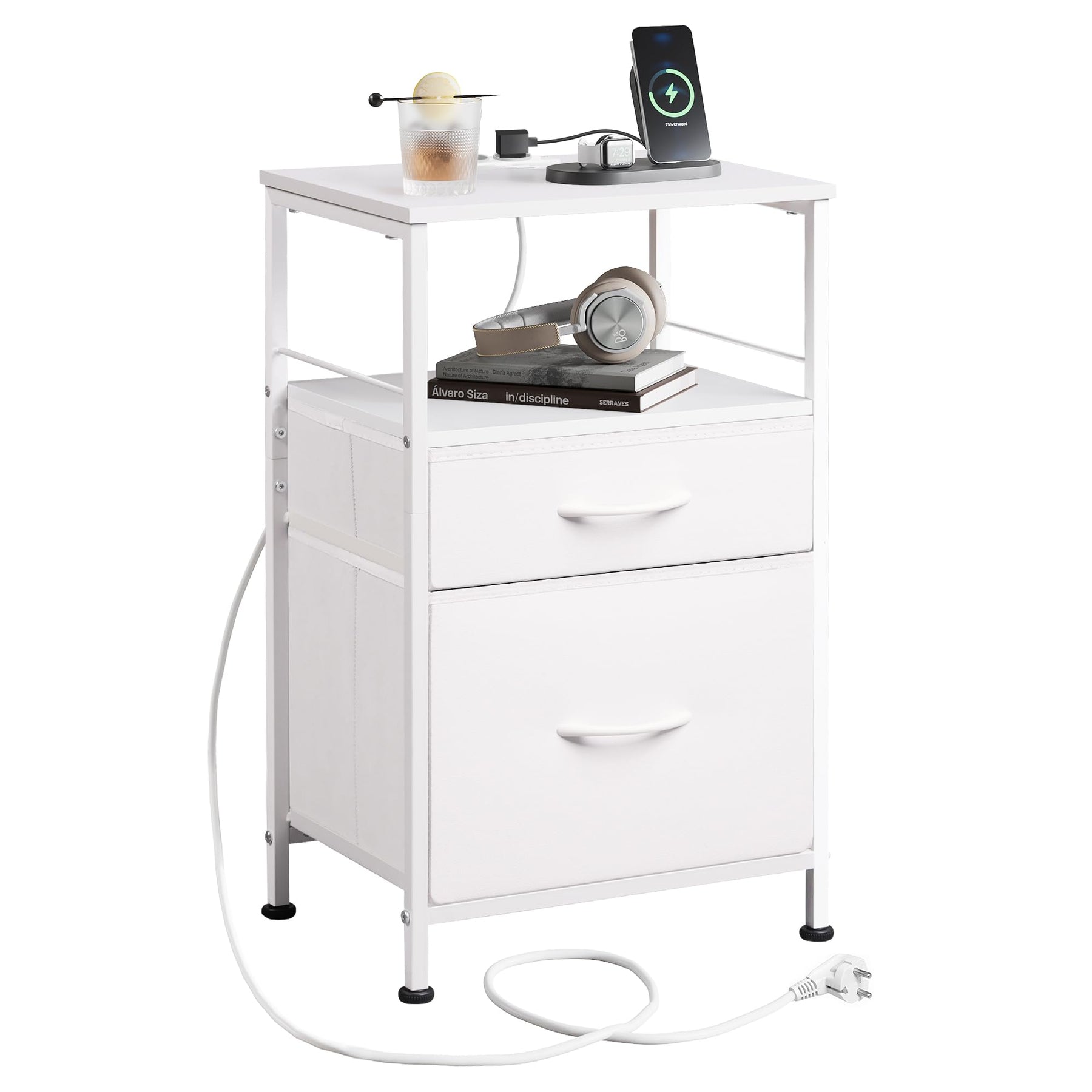 - 【Nachttisch mit Ladefunktion】 Kein Strom? Kein Problem! Dieser Nachttische verfügt über zwei Standardsteckdosen und zwei USB-Anschlüsse für die meisten elektronischen Geräte. Die optimale Anordnung der Steckdosen verhindert gegenseitige
