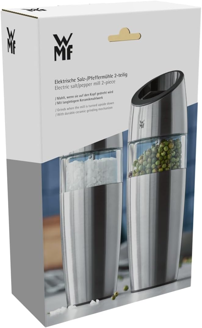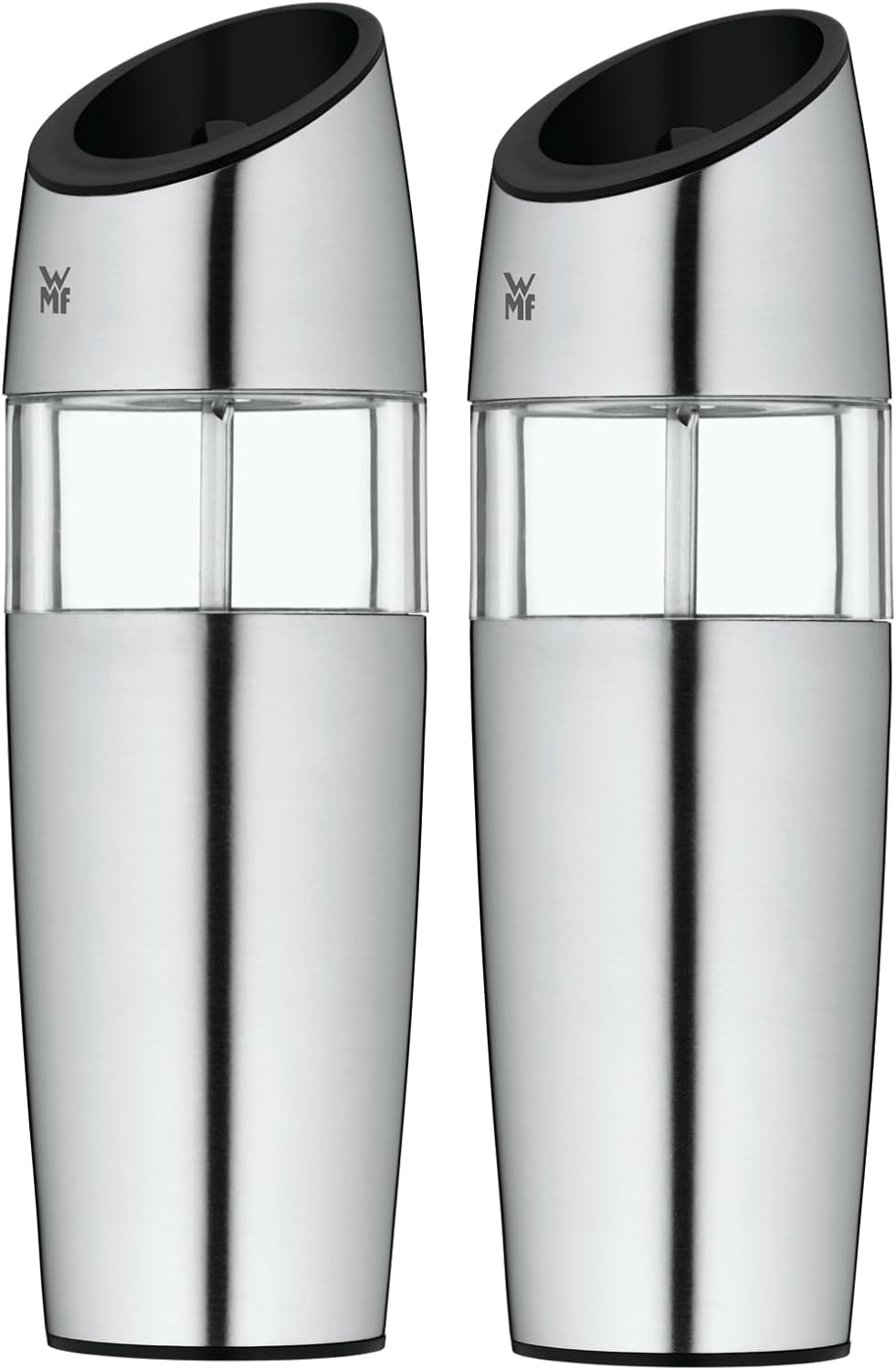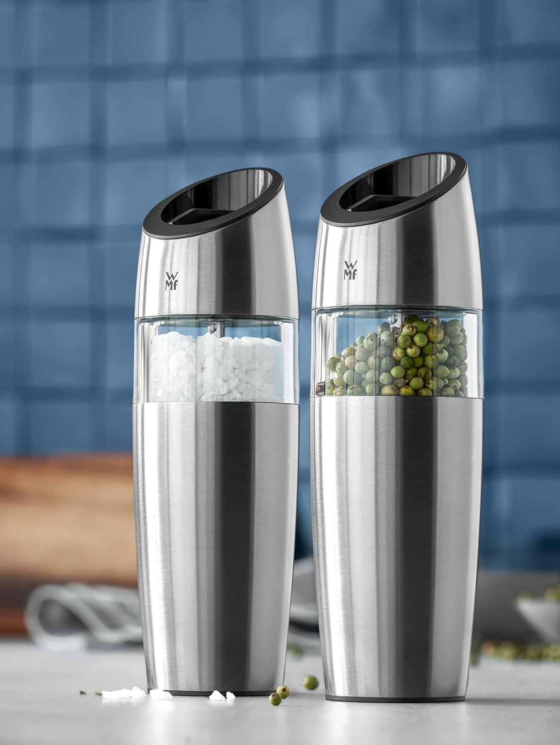 WMF Elektrische Kippmühle Set 2-teilig, 20 cm, Salz und Pfeffermühle elektrisch, unbefüllt Cromargan