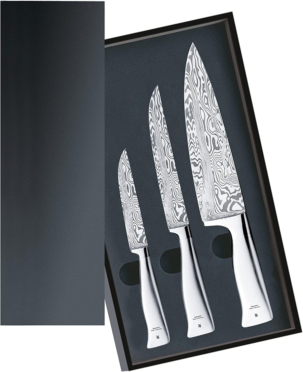 - Inhalt: 1x Damast - Allzweckmesser (23 cm, Klinge 11 cm), 1x Fleischmesser (29,5 cm, Klinge 17 cm), 1x Kochmesser (33,5 cm, Klinge 20 cm) in Holz-Geschenkkassette verpackt - Artikelnummer: 1890099998