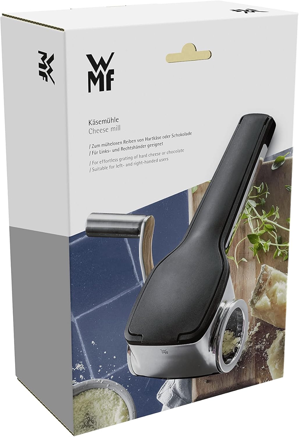 - Die Reibe ist bestens geeignet für Hartkäse (Parmesan), Schokolade, Nüsse und vielem mehr. Sicherer Halt des Reibguts beim Reiben im Trichter