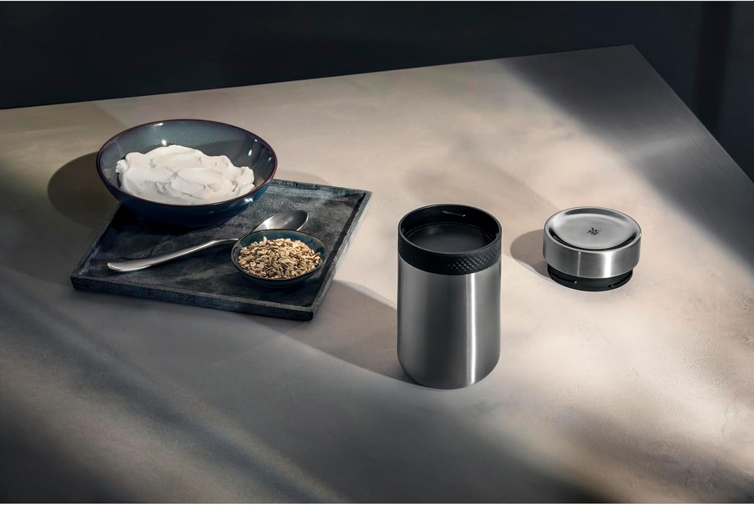 - Der obenliegende Zusatzbehälter (200 ml) hält weitere Zutaten bis zum Essen frisch. Für leckeres Müsli oder knackiges Obst zum kühlen Joghurt oder knursprige Croutons zur heissen Suppe