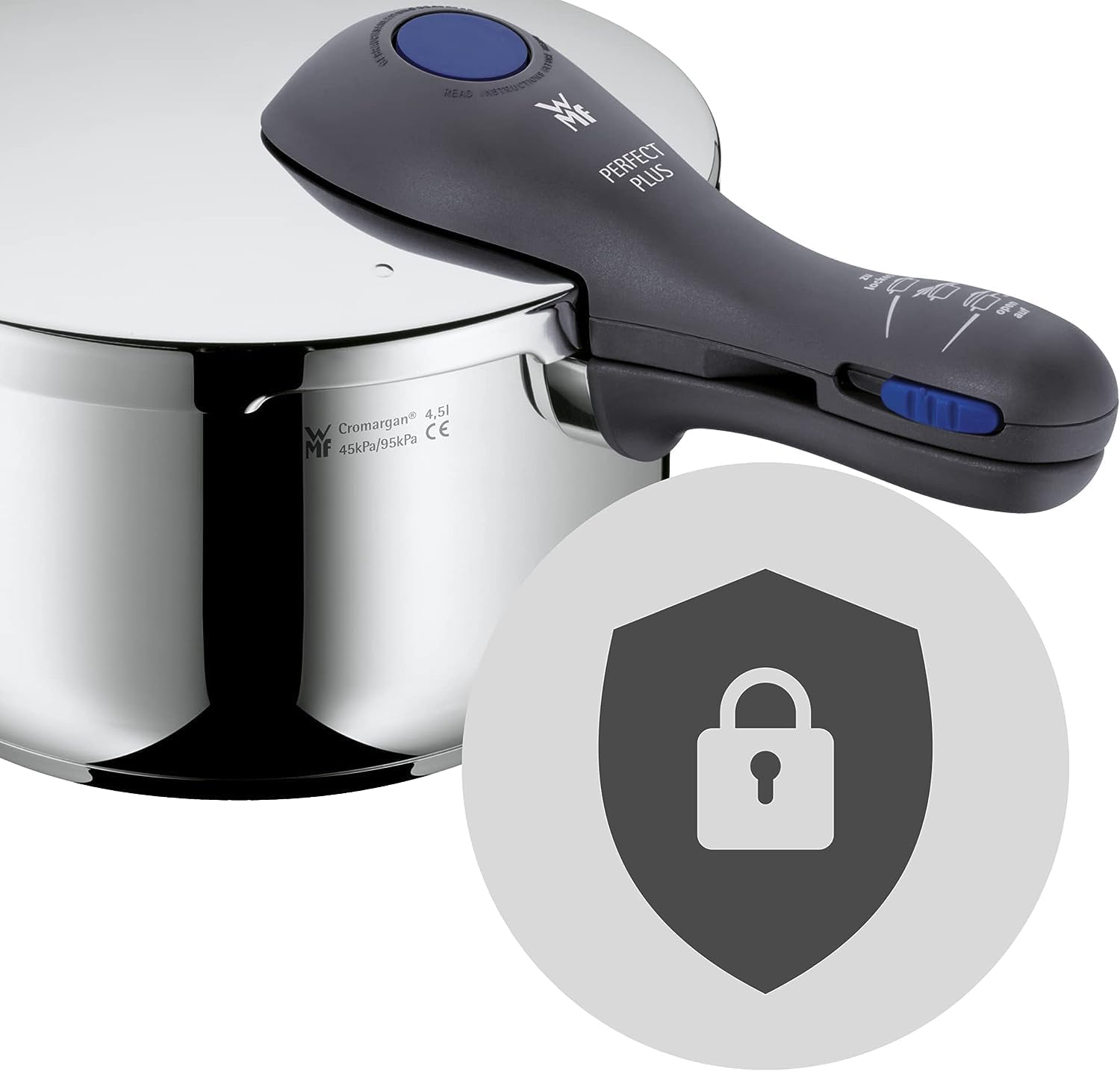 • TÜV geprüfte Sicherheit: Abdampfautomatik und Restdrucksicherung. Einfache Bedienung durch 2-Stufen-Garregler (Schon-/ Intensivstufe: 110°C/ 119°C). Abnehmbarer Deckelgriff für leichte Reinigung