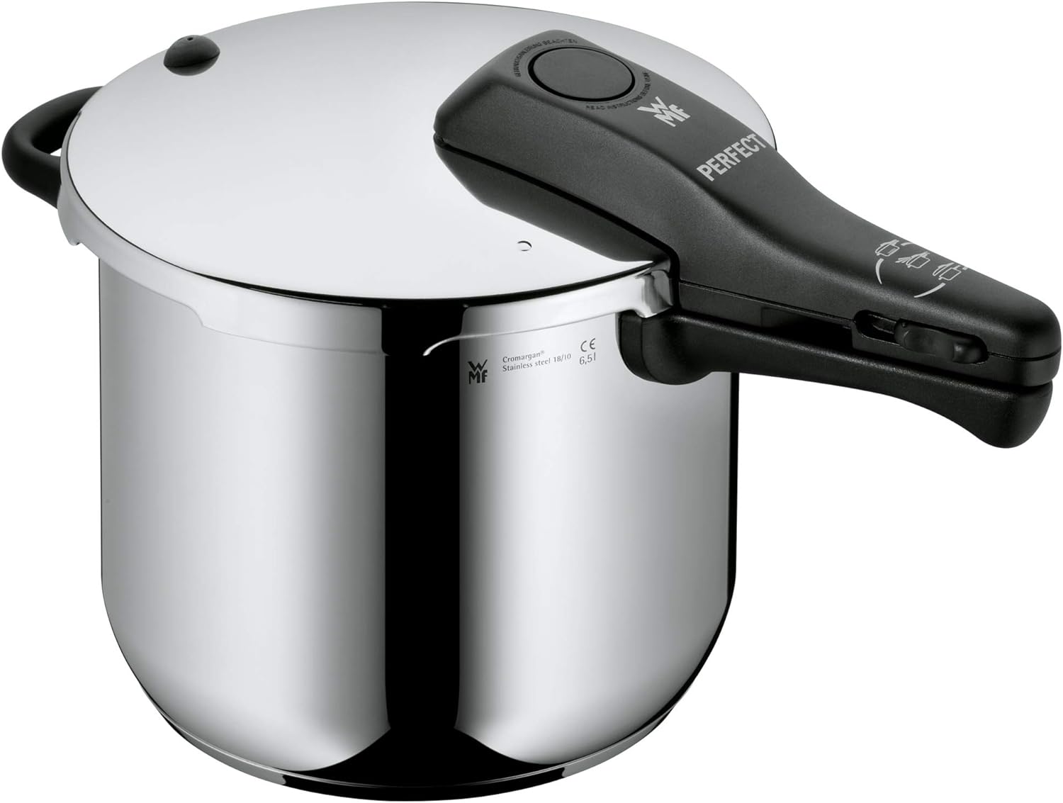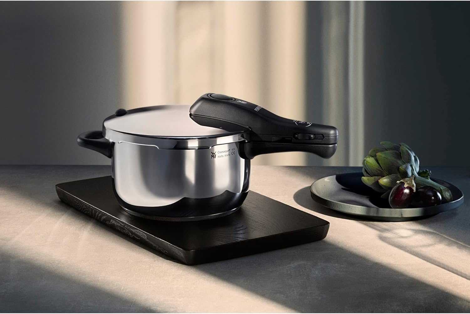 - TÜV geprüfte Sicherheit: Abdampfautomatik und Restdrucksicherung. Einfache Bedienung durch 2-Stufen-Garregler (Schon-/ Intensivstufe: 110°C/ 119°C). Abnehmbarer Deckelgriff für leichte Reinigung