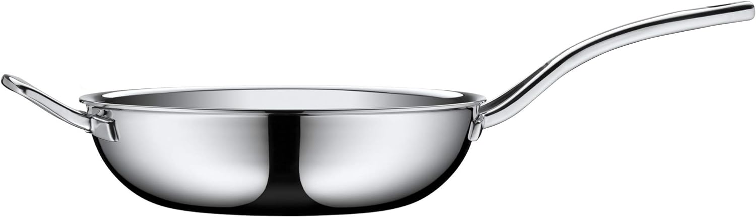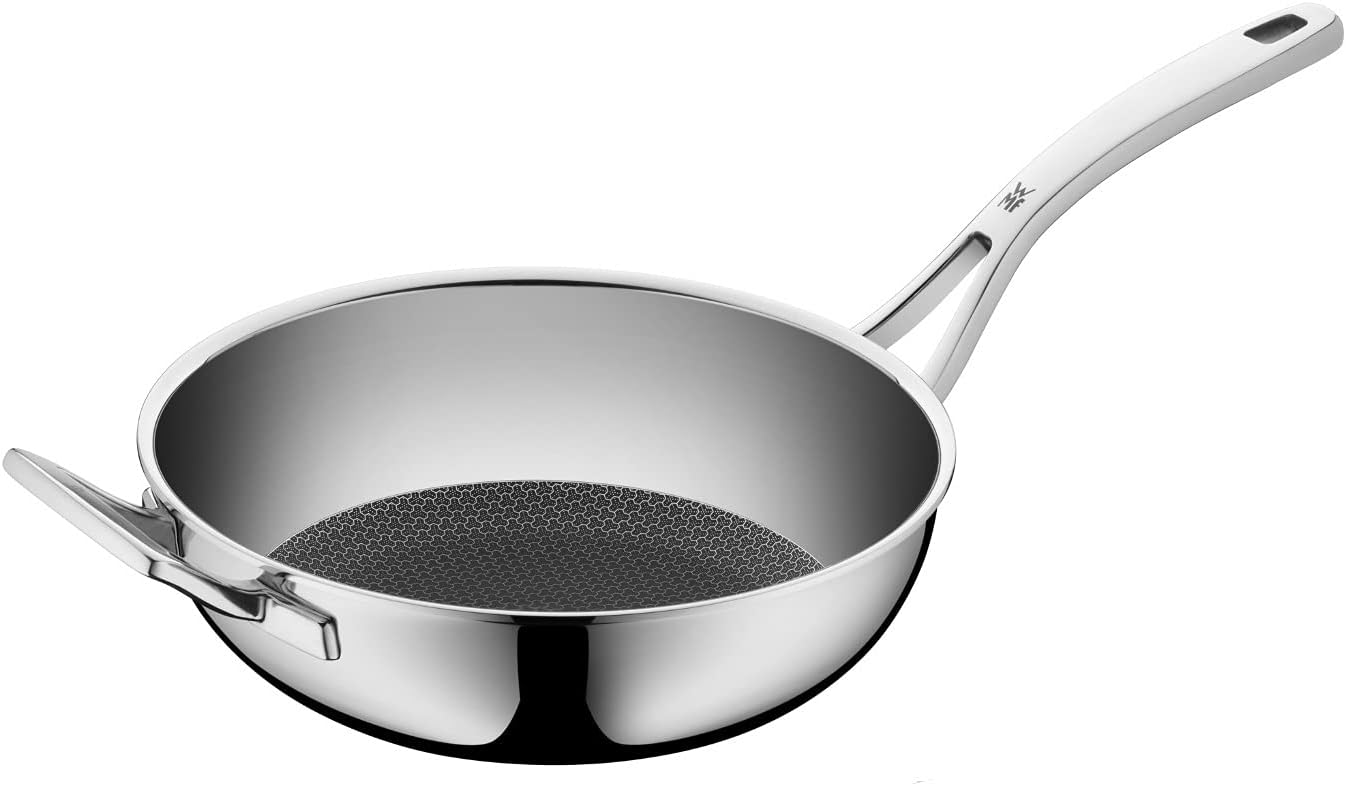 - Material: Mehrschichtmaterial (Cromargan Edelstahl, Aluminium-Kern, Aussenseite Chromstahl). PTFE-Antihaftbeschichtung mit kratzfester Edelstahl-Wabenstruktur. Hitzebeständig und backofenfest bis 260°C