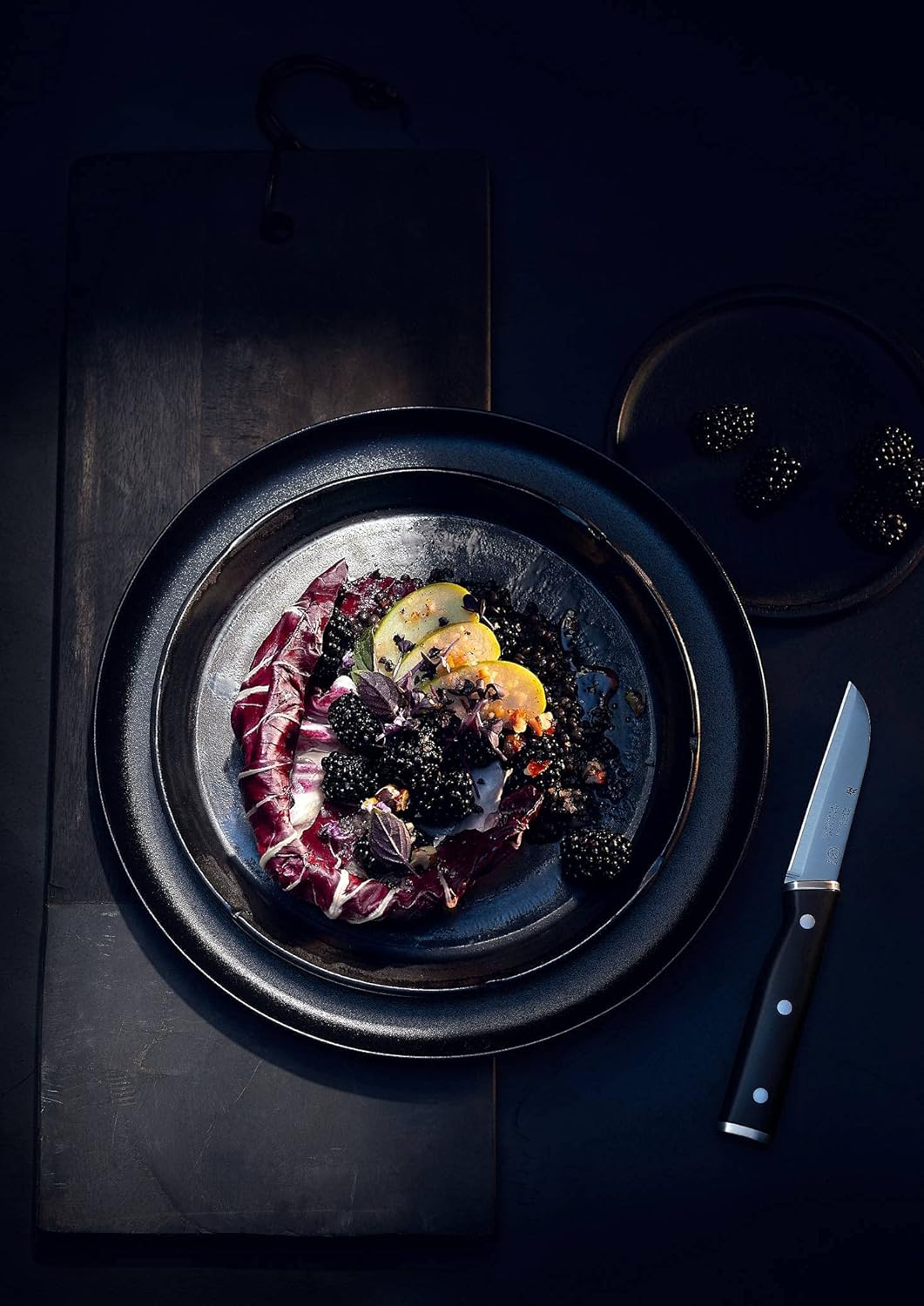 • Material: Klinge aus rostfreiem, säurebeständigem Spezialklingenstahl. Langanhaltende Schärfe dank gehärteter Klinge.Vernieteter Griff aus hochwertigem Kunststoff mit Edelstahl-Griffkappen veredelt