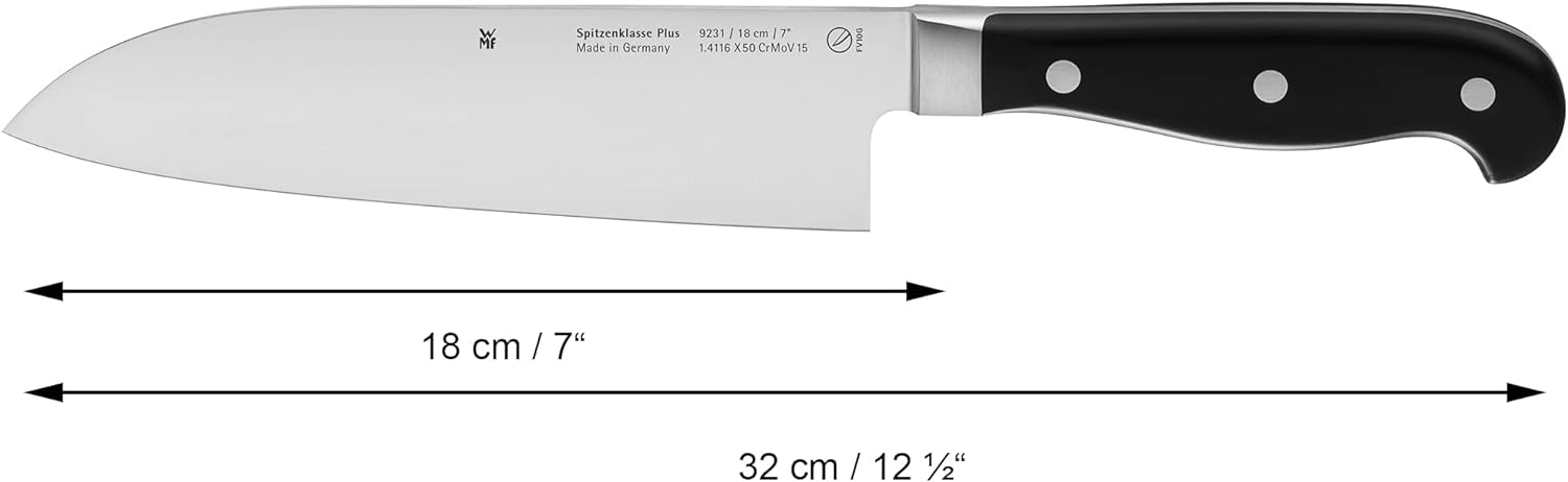 WMF Spitzenklasse Plus Santoku Messer 32 cm, Made in Germany, Messer geschmiedet, Performance Cut, S