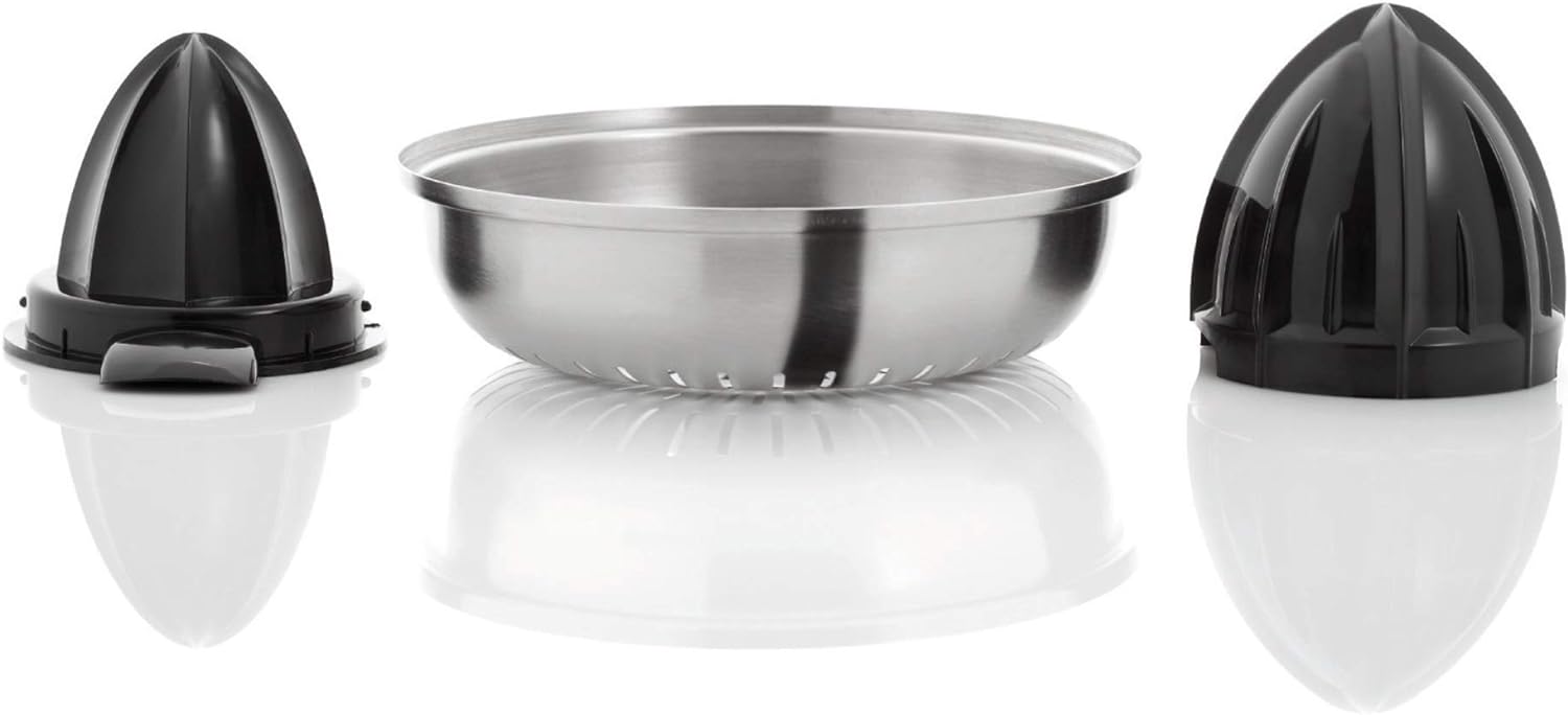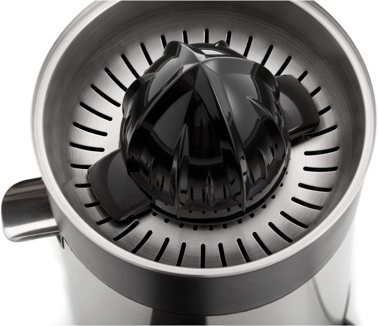 - Inhalt: 1x Zitruspresse elektrisch aus Cromargan Edelstahl matt (15 x 16 x 26 cm, 85 W, Kabellänge 1m), 1x Presskegel gross, 1x Presskegel klein - Artikelnummer: 0416030012
