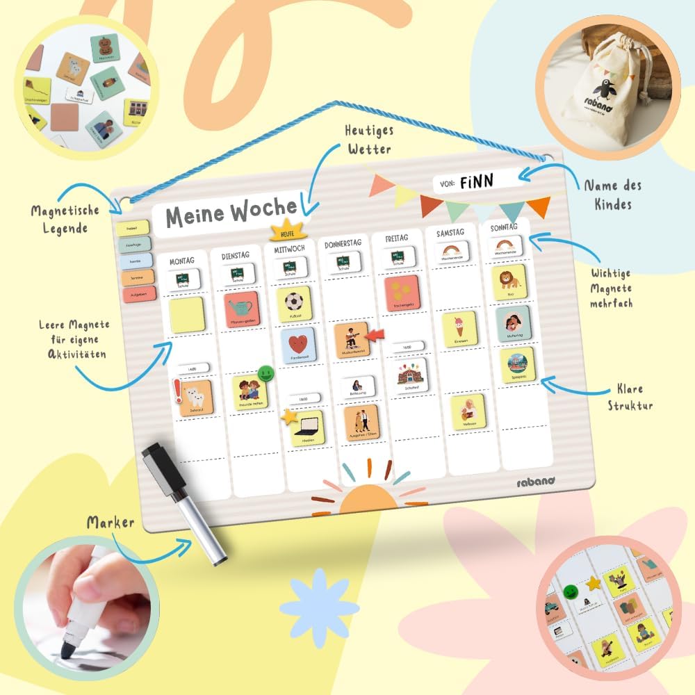 - ✅ 𝐒𝐩𝐢𝐞𝐥𝐞𝐫𝐢𝐬𝐜𝐡 𝐕𝐞𝐫𝐚𝐧𝐭𝐰𝐨𝐫𝐭𝐮𝐧𝐠 𝐥𝐞𝐫𝐧𝐞𝐧: Mit dem liebevoll gestalteten Wochenplaner für Kinder lernt dein Kind spielerisch den Wochenablauf eigenständig zu planen