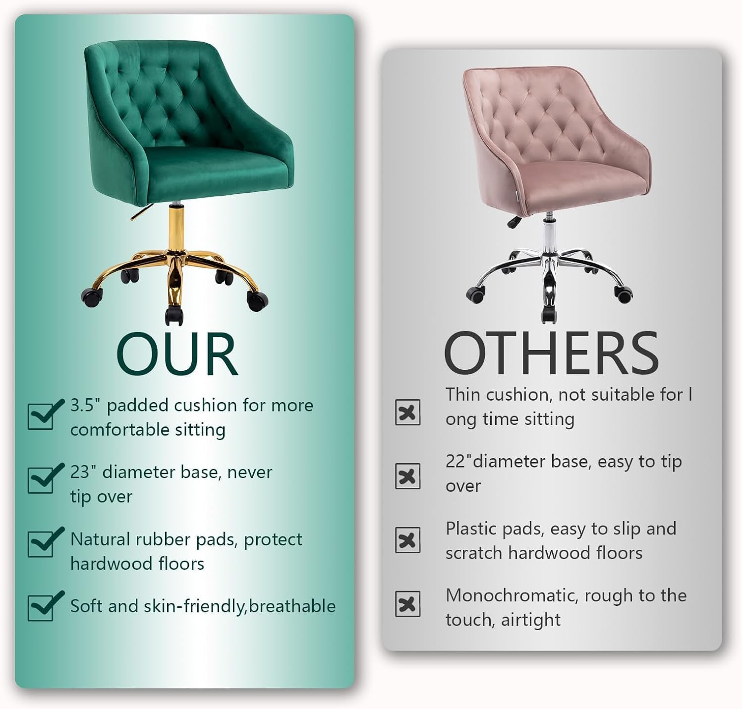 - 【Breites Anwendungsspektrum】: Es ist nicht nur ein Bürostuhl, sondern eignet sich auch sehr gut als dekorativer Stuhl, Make-up-Stuhl, Computerstuhl, Drehstuhl, Samtstuhl usw