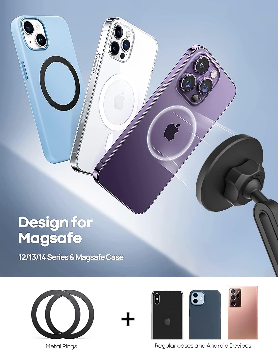 - 【Präzise für Magsafe entwickelt】Steigern Sie Ihr Fahrerlebnis mit unserer neuen lüftungsgitter handy autohalterung magnet, die für Telefone der iPhone-Serien 14, 13 und 12 entwickelt wurde. Wir bieten 2 zusätzliche Metallringe, passend für