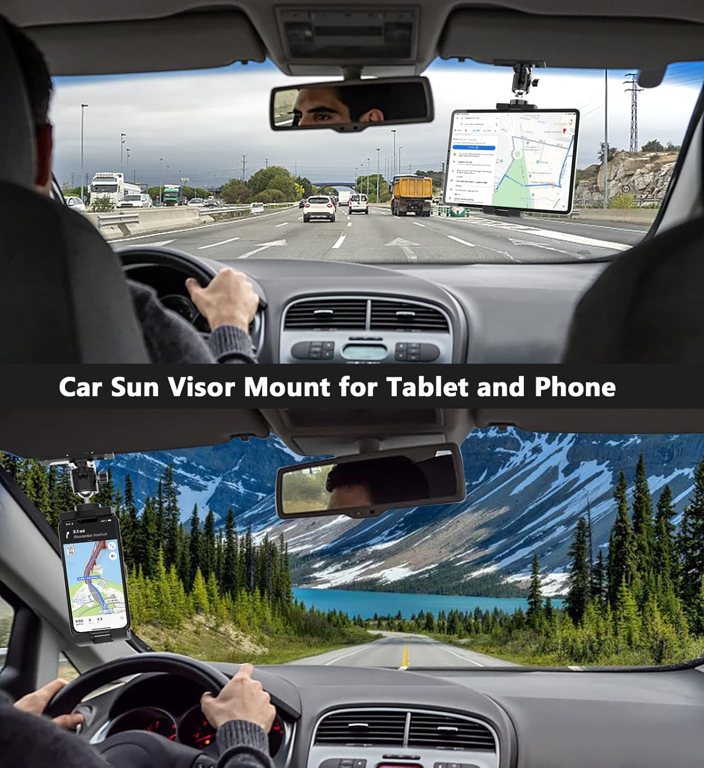 - 【Universelle breite Kompatibilität】PKW Sonnenblende Tablet Ständer passend für alle 4"-13" Bildschirm Handys und Tablets, wie kompatibel mit neuen iPad Pro 9.7/ 10.5/ 11/ 12.9, iPad Air 2/ Air 3/ Air 4, iPad Mini 1/ 2 / 3 / 4 / 5, iPhone 11/ 12/