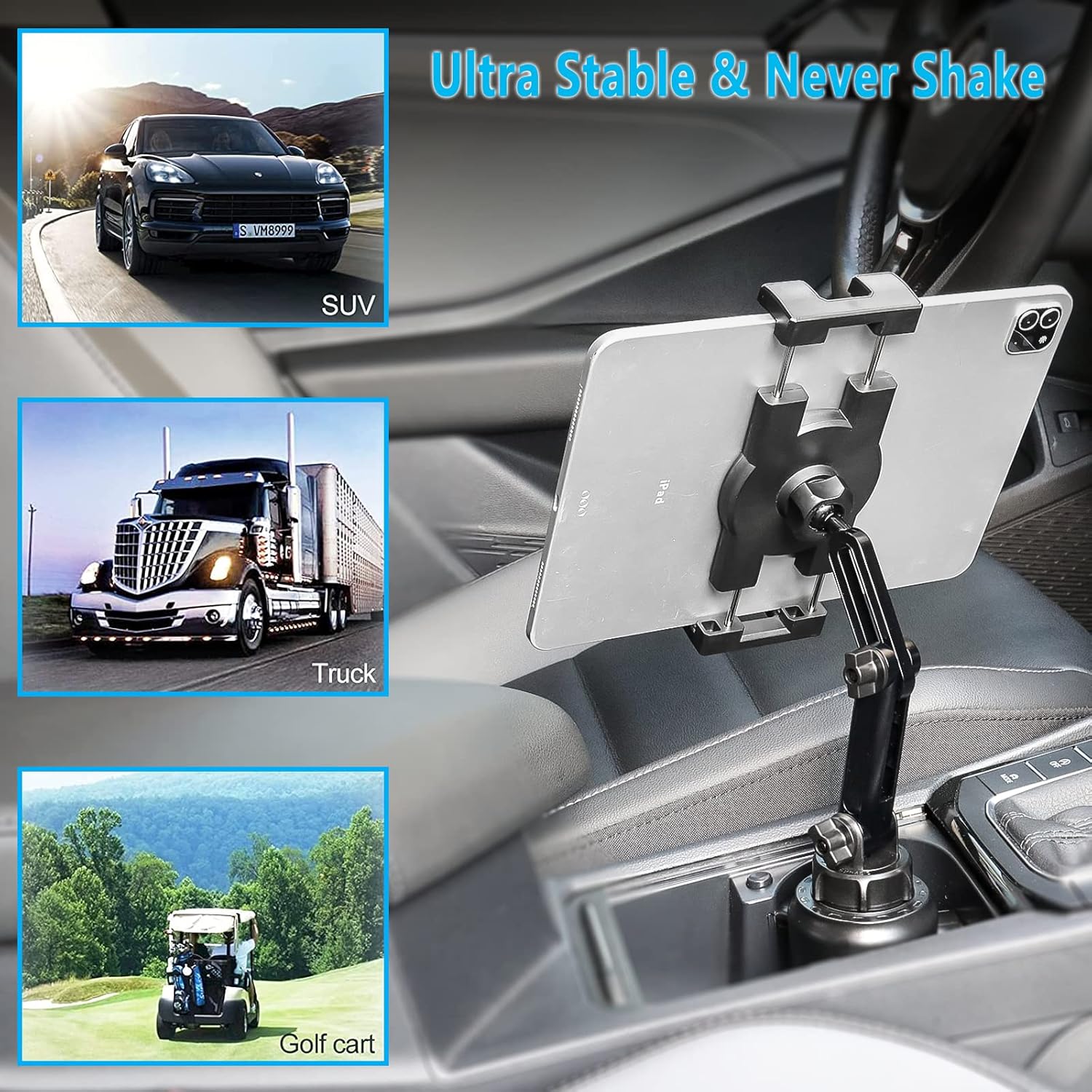 - 【Einfache & schnelle Installation】Neue auto getraenke tablet halterung ist einstellbar und passt fest und perfekt, sicher in den Becherhalter für Auto, LKW, SUV, Tesla, Golfwagen, Laufband oder Kinderwagen, passend für Becherhalter