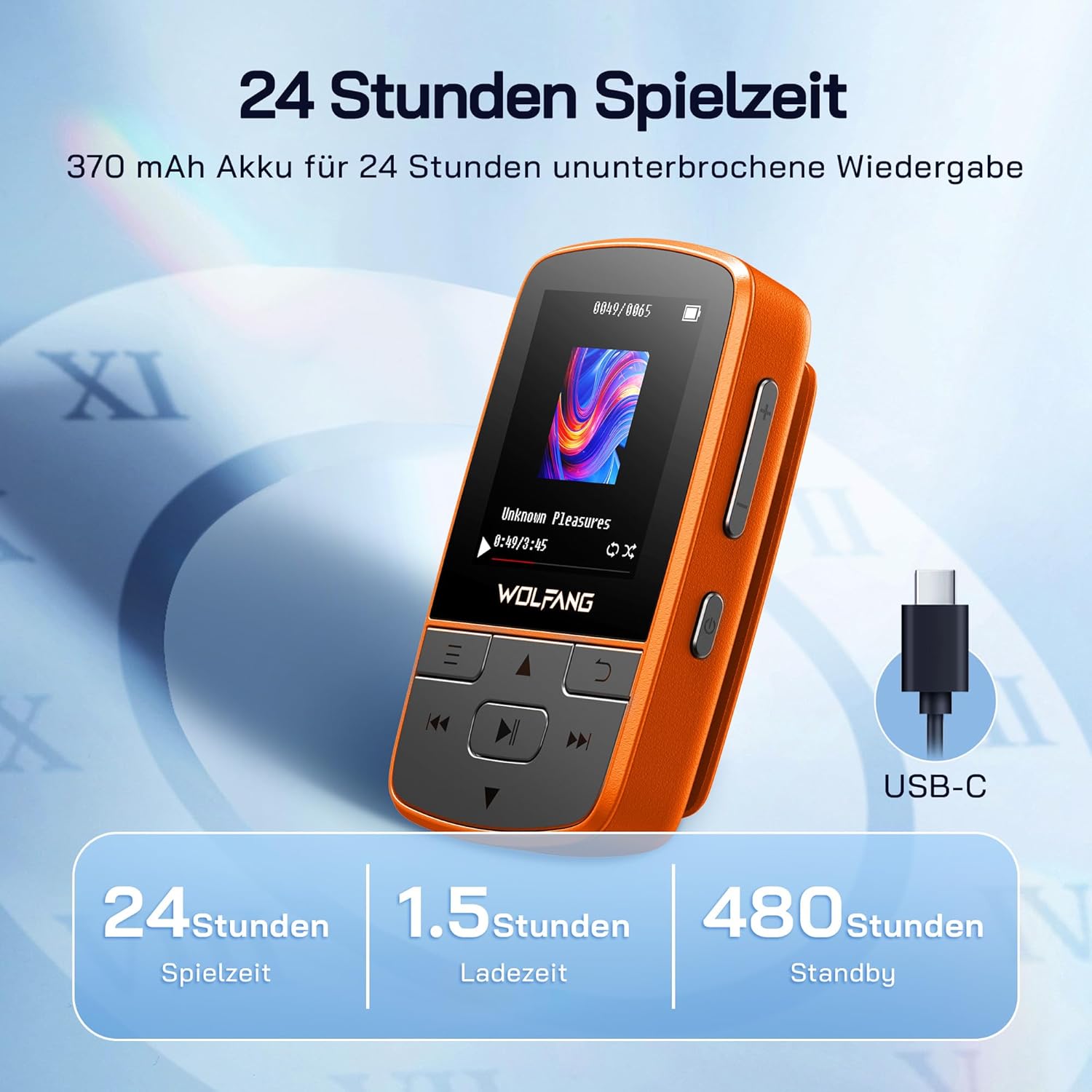 - 【Multifunktionaler MP3-Player】Erleben Sie mehr Musik mit WOLFANG's Multifunktions-MP3-Player. FM-Radio, Bild, Aufnahme, Schrittzähler und Timer-Funktionen sind nahtlos in Ihr tägliches Leben integriert, und das kompakte Design bietet Komfort
