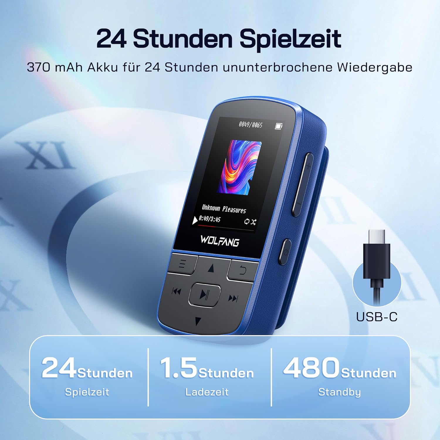- 【Multifunktionaler MP3-Player】Erleben Sie mehr Musik mit WOLFANG's Multifunktions-MP3-Player. FM-Radio, Bild, Aufnahme, Schrittzähler und Timer-Funktionen sind nahtlos in Ihr tägliches Leben integriert, und das kompakte Design bietet Komfort