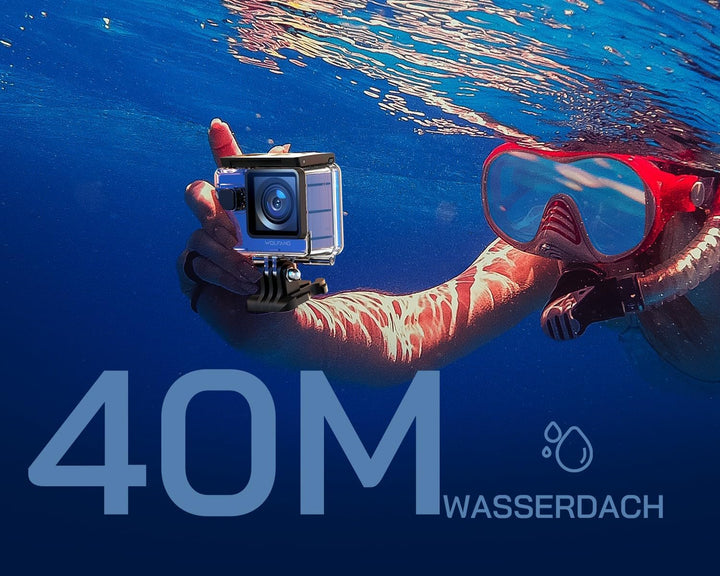 - 🏄♀️【40M Wasserdichte Kamera & Tauchmodus】 Das wasserdichte Gehäuse schützt diese Unterwasserkamera für den Einsatz unter Wasser für bis zu 40 Meter. Ideal für Wassersportarten wie Schwimmen, Surfen, Segeln und Tauchen usw. Der farbkorrigierte Tauchmodus reduziert die blauen oder grünen Wellenlängen erheblich, sodass Ihr Video lebendiger und natürlicher aussieht.