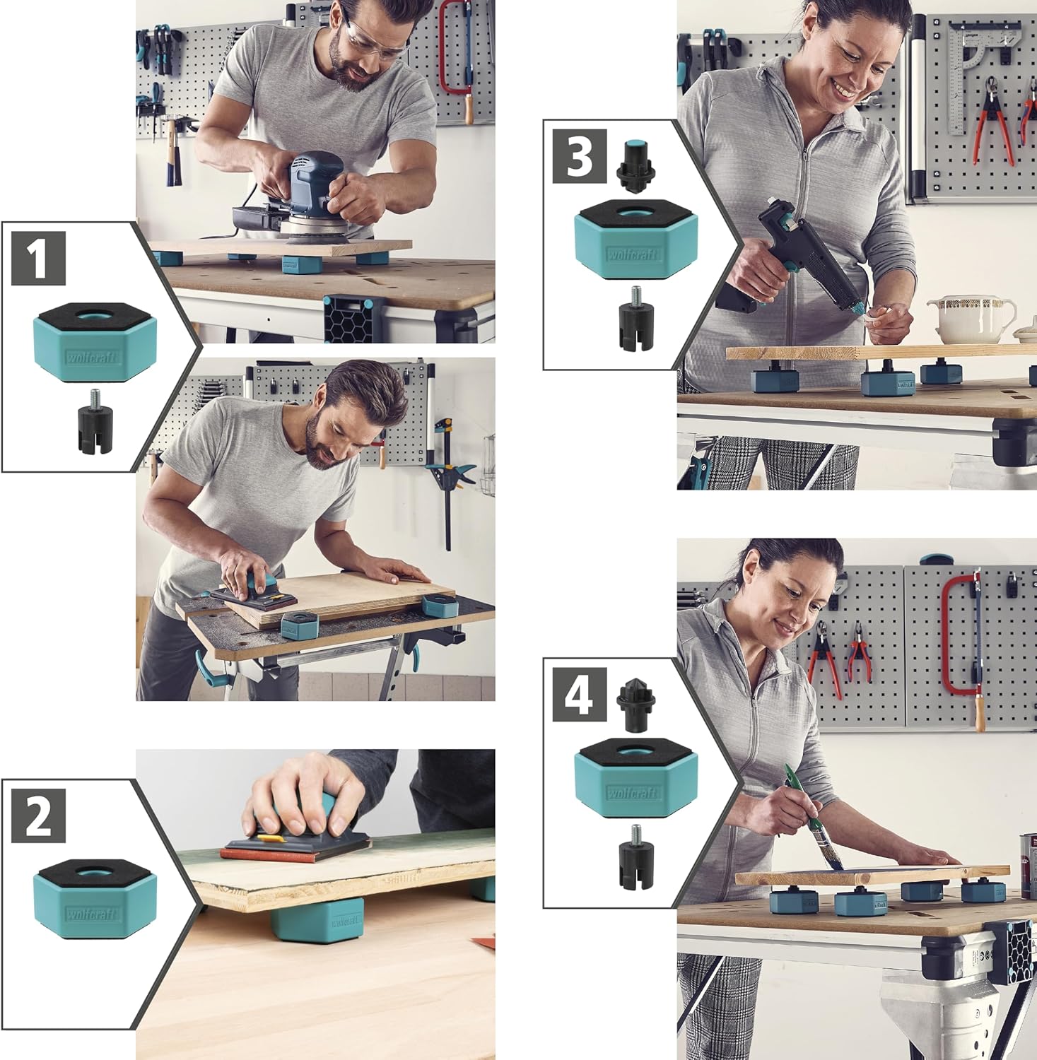 - optionale 20-mm-Aufnahmen zur Fixierung in Werk- und Spanntischen mit 20-mm-Bohrungen für extra Halt