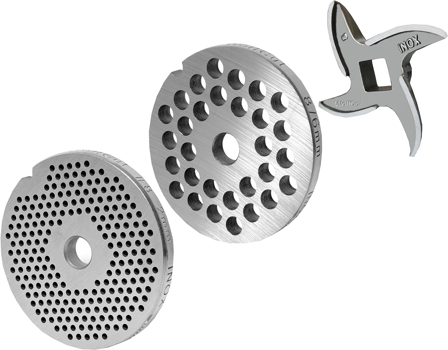 - Lochscheibensatz für alle Fleischwolf Grössen 8 / 2mm + 6mm Bohrung und 1 Sichelmesser +++ Geeignet u. a. für folgende Marken: Jupiter; Alexanderwerk; Bosch und Prospero Fleischwölfe. +++ Bohrungsdurchmesser: 2,0 mm - 6,0 mm +++ Scheibendurchmesser: