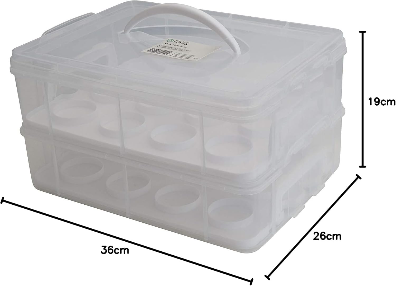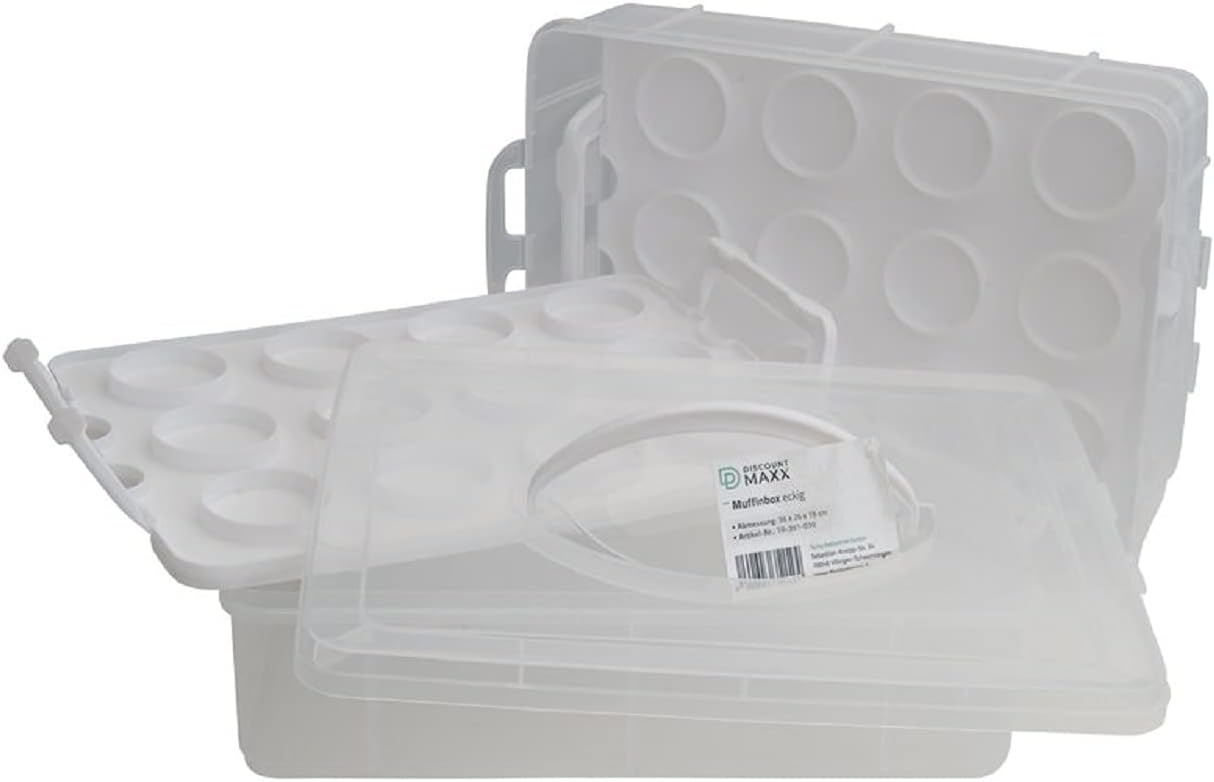 - ProdukteigeAnwendung: geeignet zum Transport und zur Aufbewahrung von bis zu 24 Muffins und Cupcakes. Typ: Muffin-Transportbox Eigenschaften: 2 Etagen mit Platz für jeweils 12 Muffins oder Cupcakes jede Etage enthält ein abnehmbares Regal verschliessendem Schnappverschluss mit Griff zum einfachen Transport Die Box kann auch einzeln verwendet werden. Durch Verbindungssystem kann die Box beliebig erweitert werden.