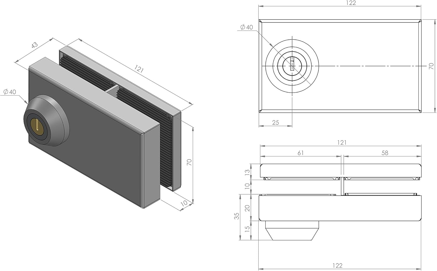 WOLFPACK 3180002 Linea Professional Schloss CBM 2002 Glastür Flachschlüssel, Acero Inoxidable Pulido