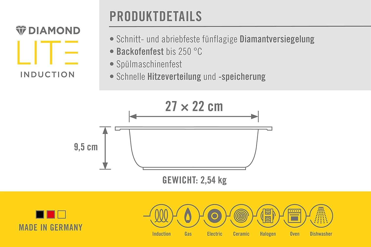 • ANTIHAFTVERSIEGELUNG: Einen kinderleichten Abwasch und fast fettfreies Kochen ermöglicht unsere ultraharte- und abriebfeste Diamantversiegelung.