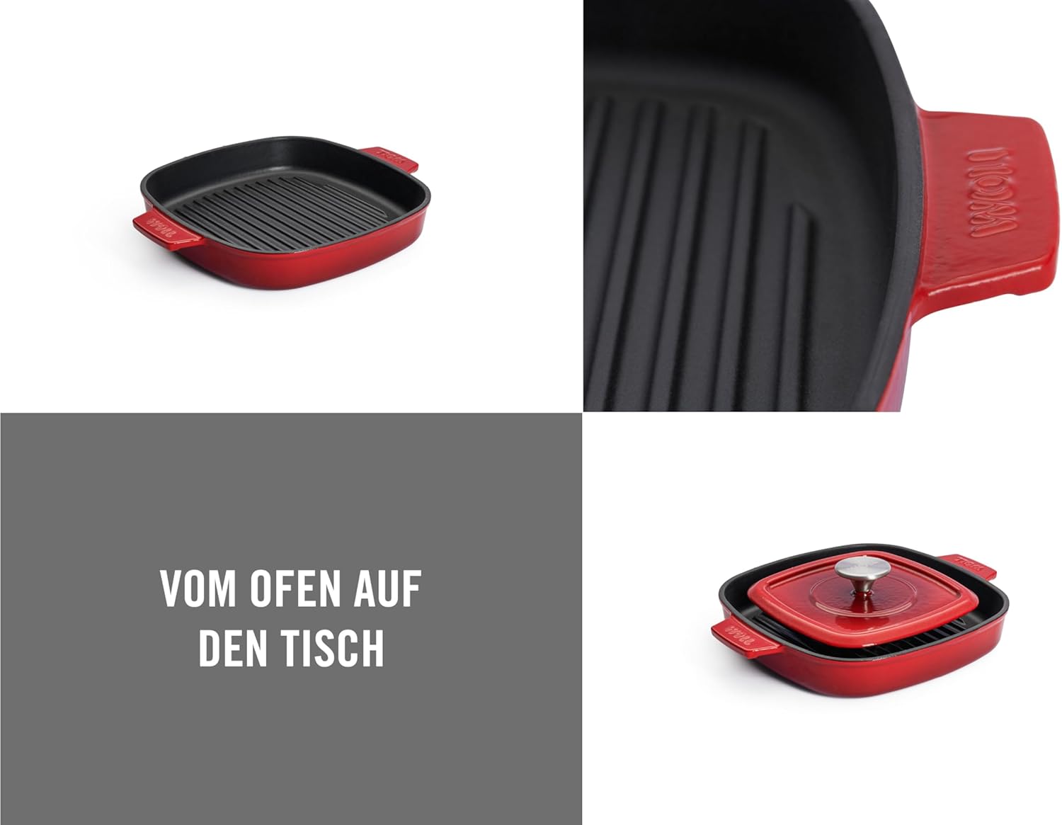 Woll Iron Grillpfanne viereckig mit Rillen, inkl. Steakpresse und Silikongriffen - Induktiv -, 24 x