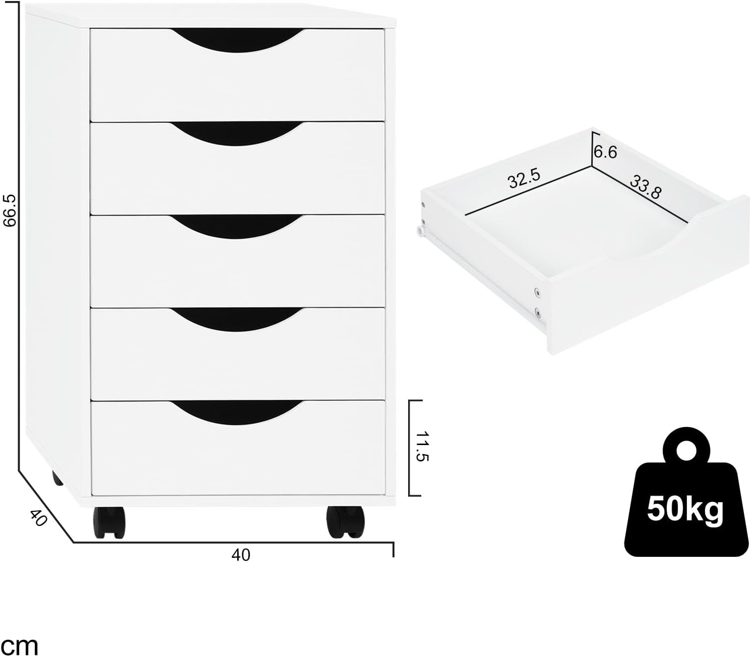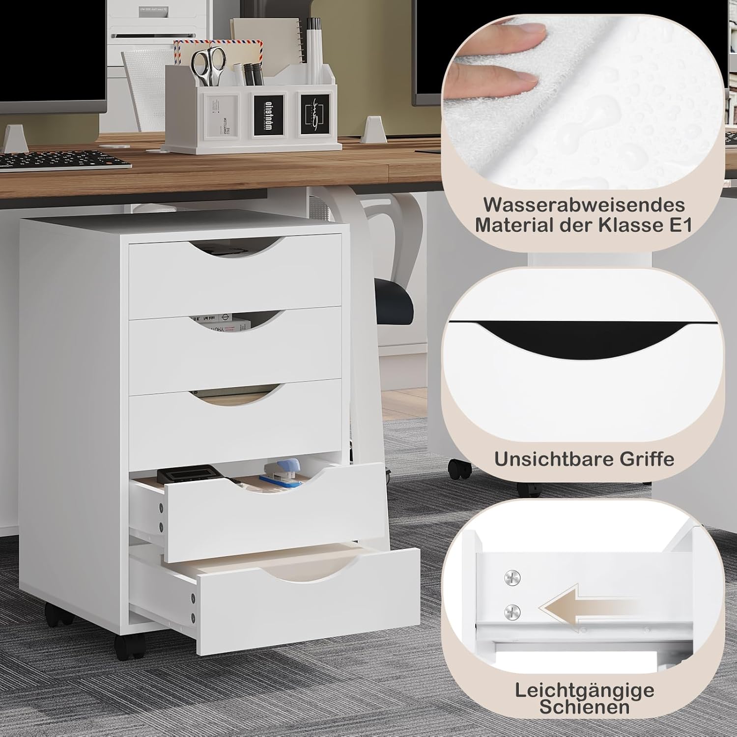 - REICHLICH STAURAUM: Der Rollcontainer mit 5 grossen Schubladen bietet Platz für Dokumente, Büromaterial, Kosmetika, Kleinigkeiten usw. Seine Oberplatte gibt ebenfalls geräumige Fläche für Schreibtisch-Organizer, kleinen Drucker, Bilderrahmen, Nippes