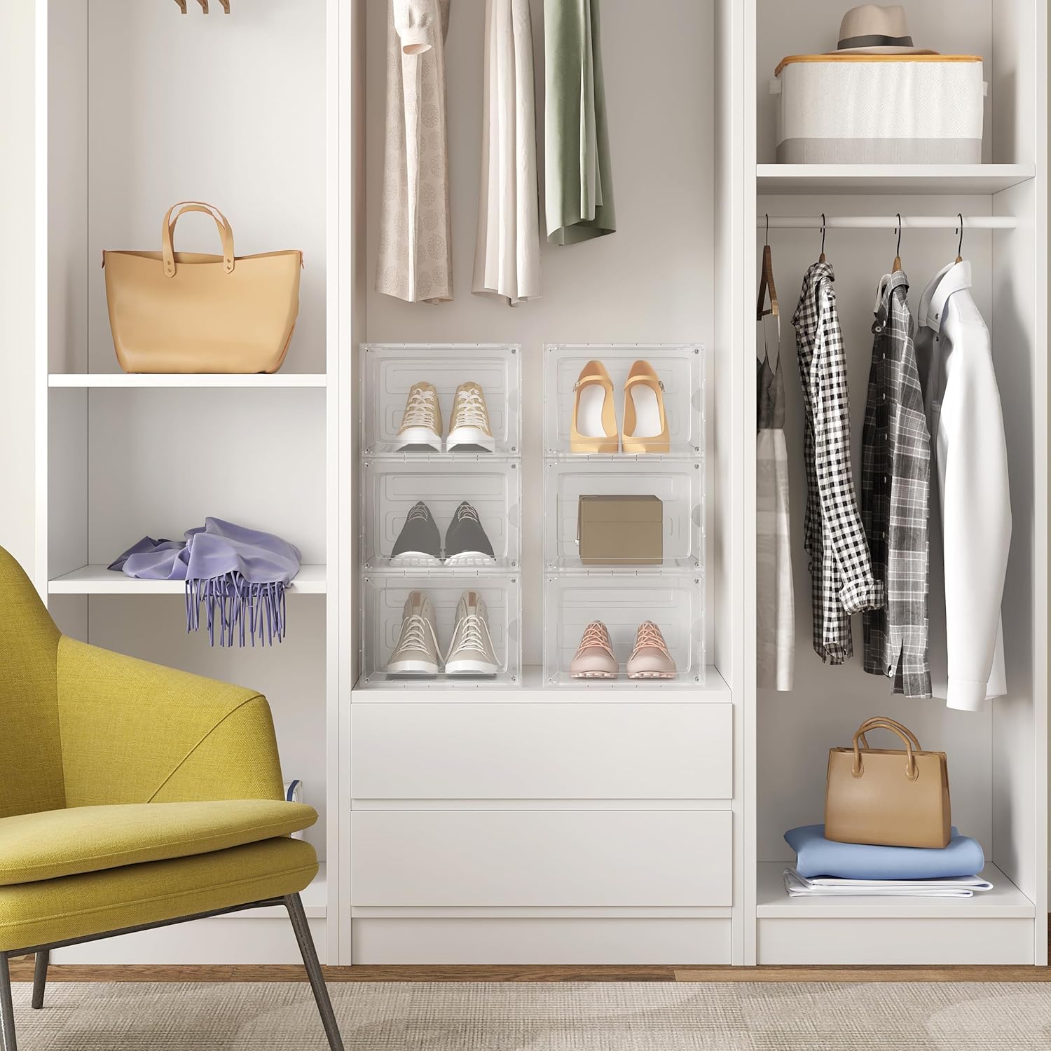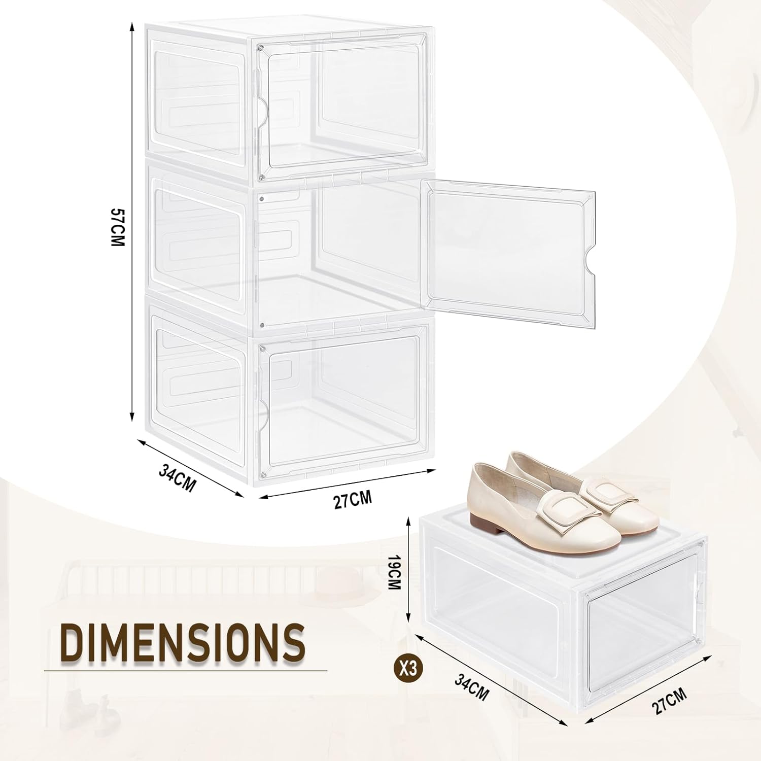 WOLTU Schuhboxen, 3er Set stapelbare Schuhbox, Schuhkarton Schuhkasten, mit magnetischer Tür, transp